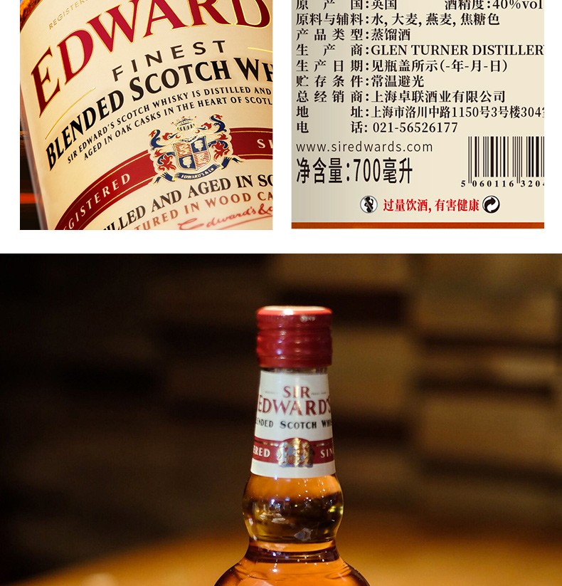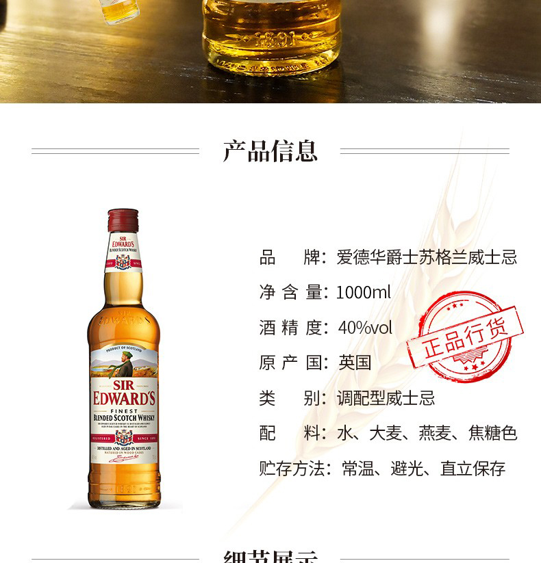 【双支特惠装】爱德华爵士威士忌 Sir Edward's Whisky 1000ml*2
