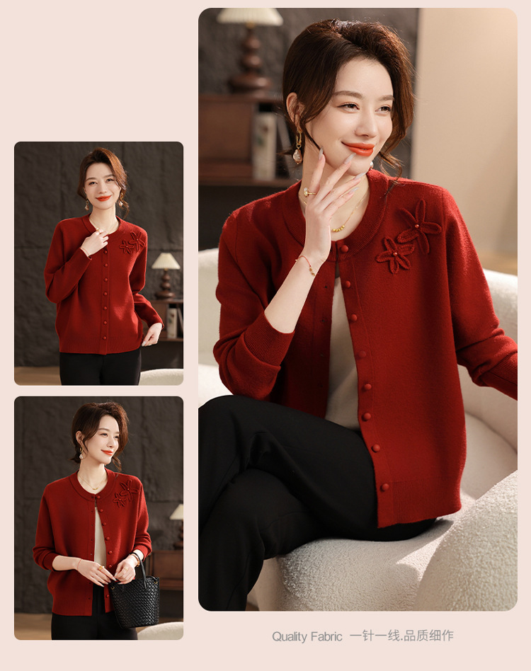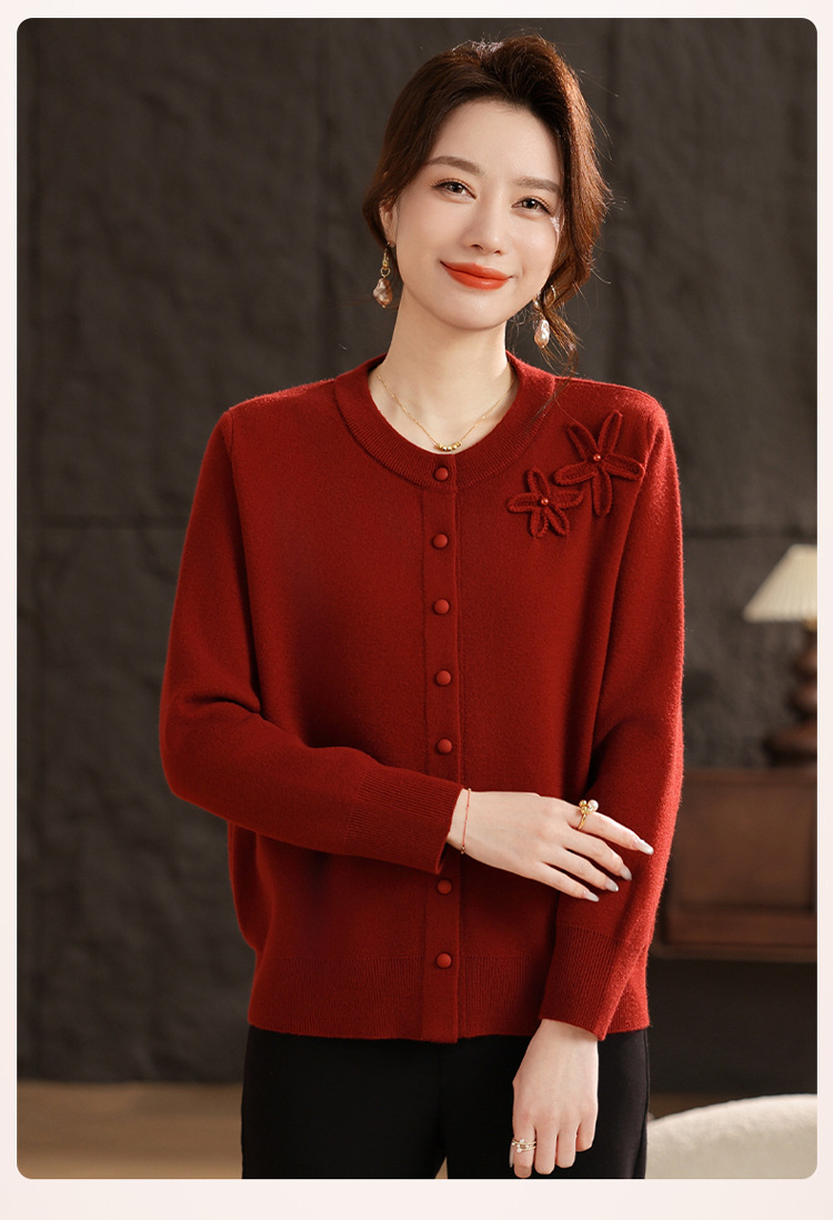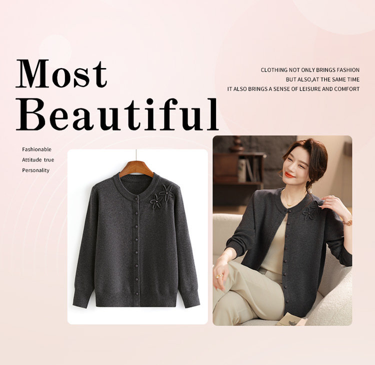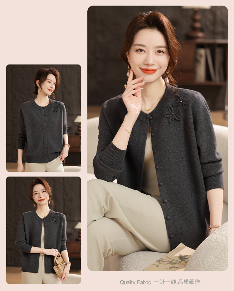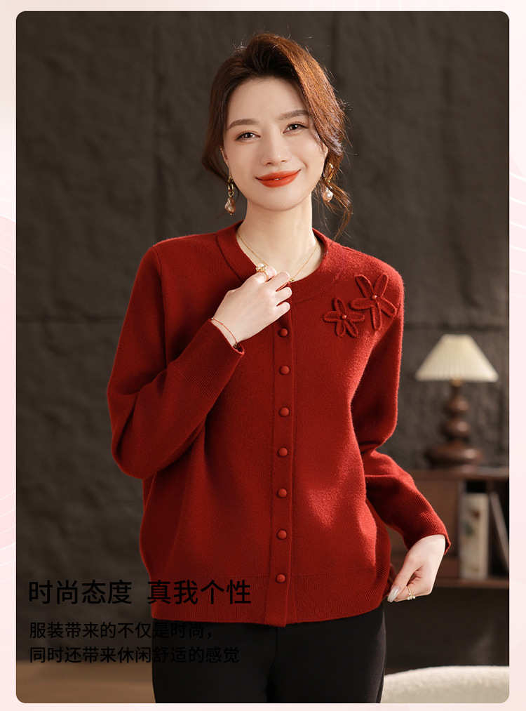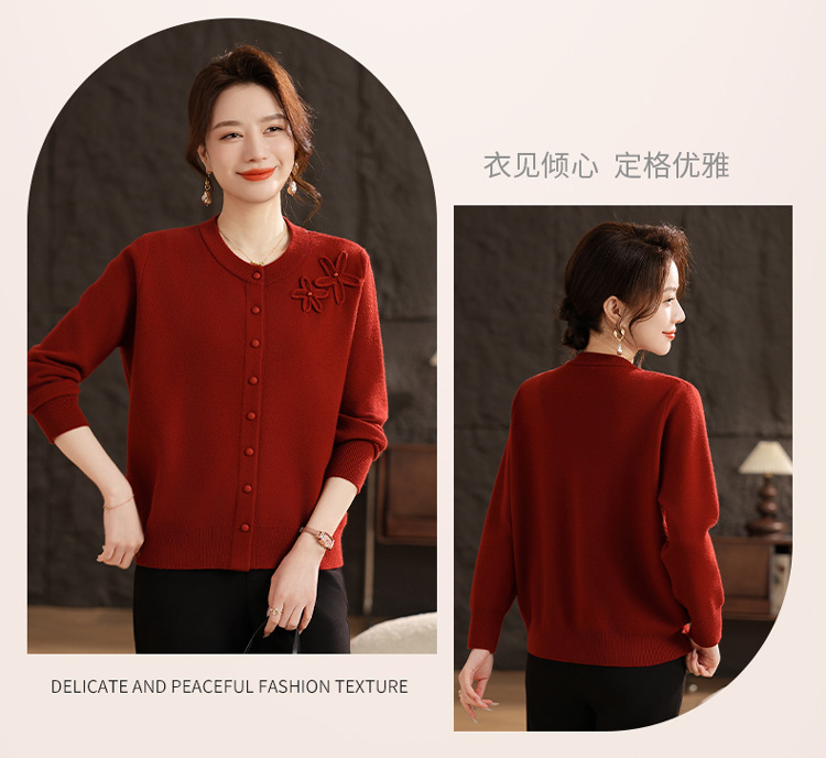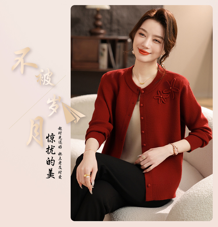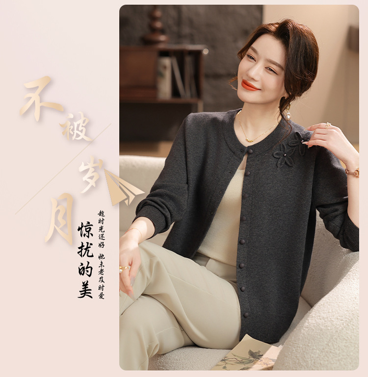 【新款妈妈春装】洋气针织开衫 中年女装 春秋时尚毛衣外套 气质小衫毛衣 妇女节