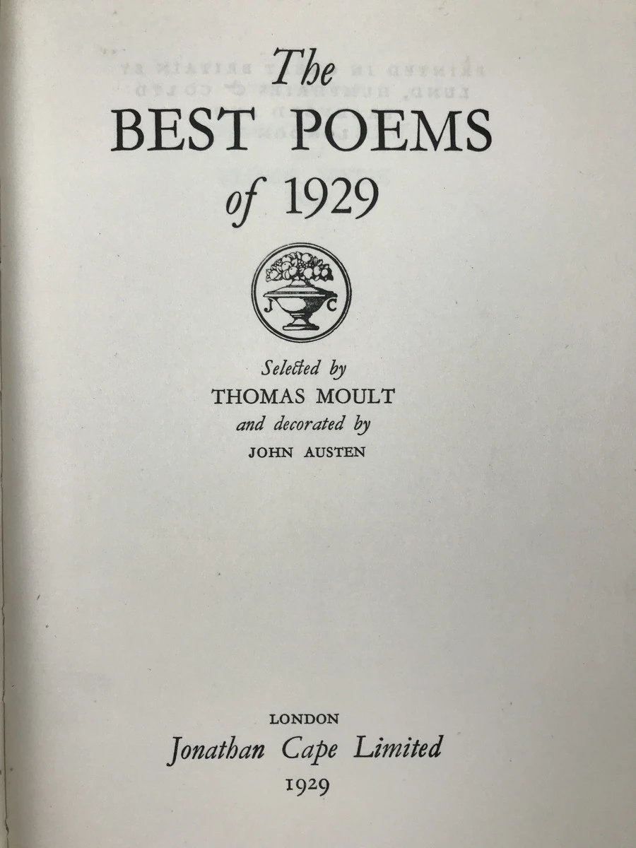 1929年 最佳诗歌选集 约翰·奥斯丁版画插图 漆布精装32开