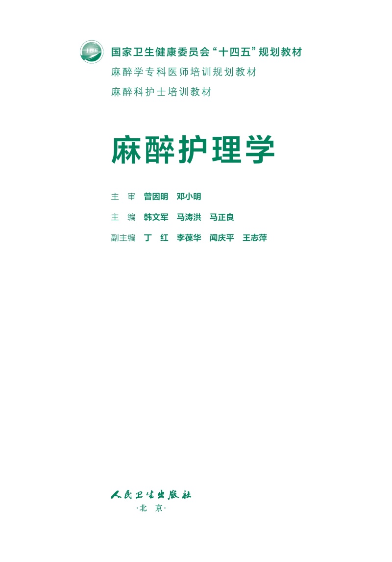 麻醉护理学 十四五规划教材 麻醉学专科培训规划教材 麻醉科护士培训教材 韩文军 马涛洪 马正良 主编9787117374552人民卫生出版社