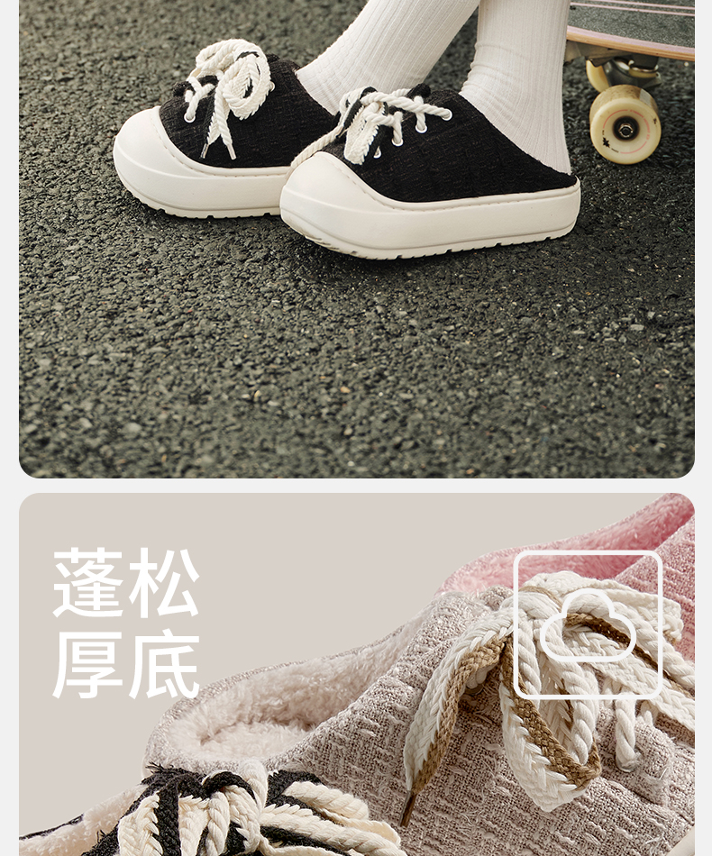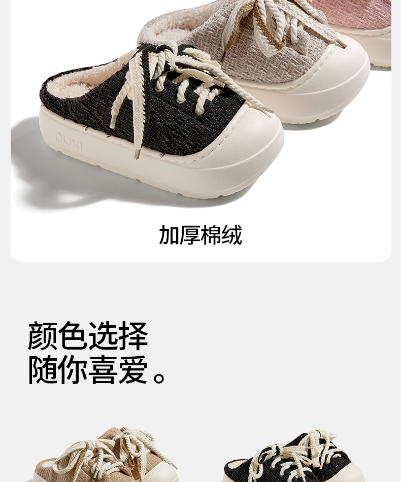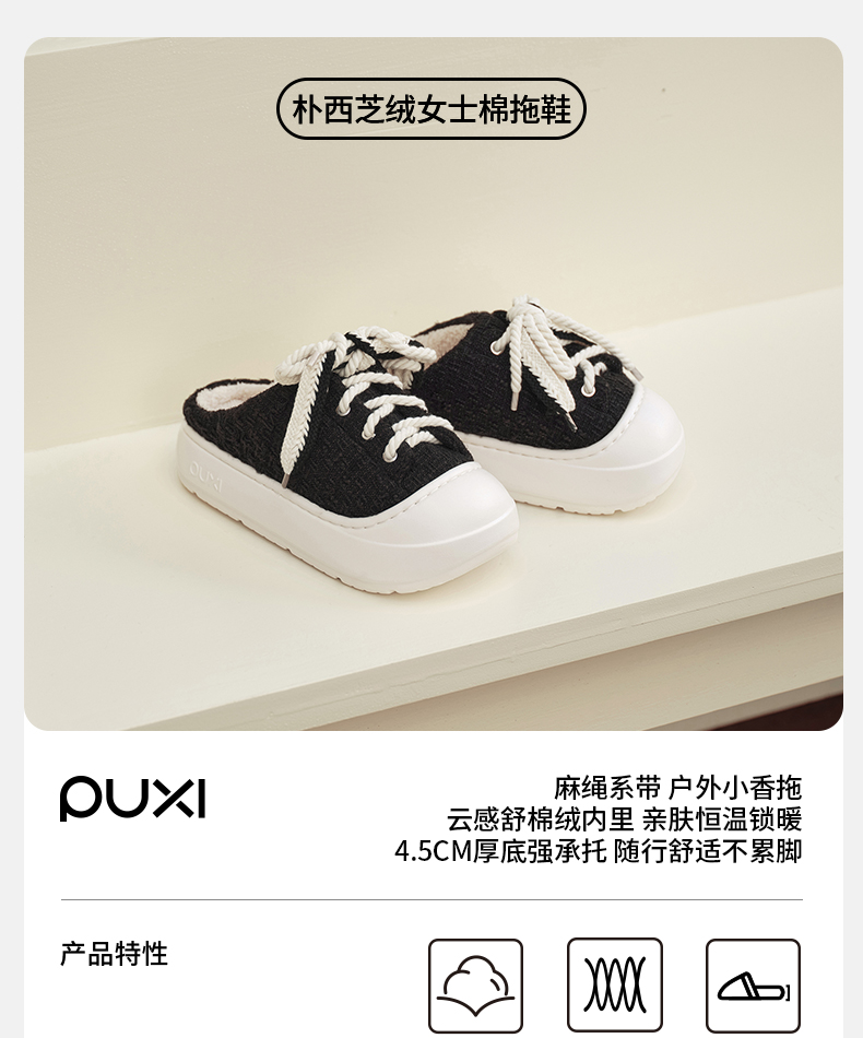 2025秋冬上新朴西芝绒棉拖鞋女小香风冬季厚底可外穿拖鞋