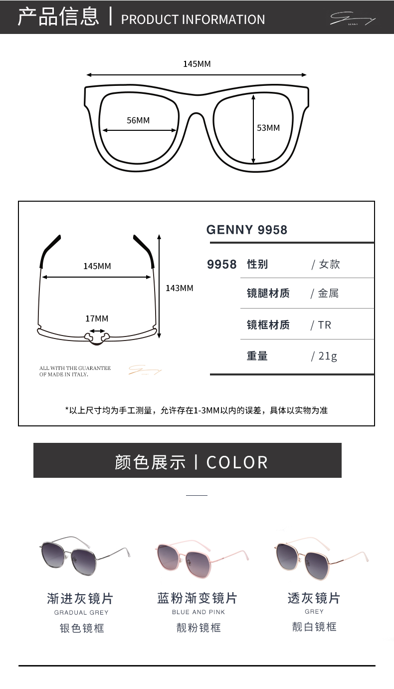 GENNY金属太阳镜 买即送男士偏光眼镜