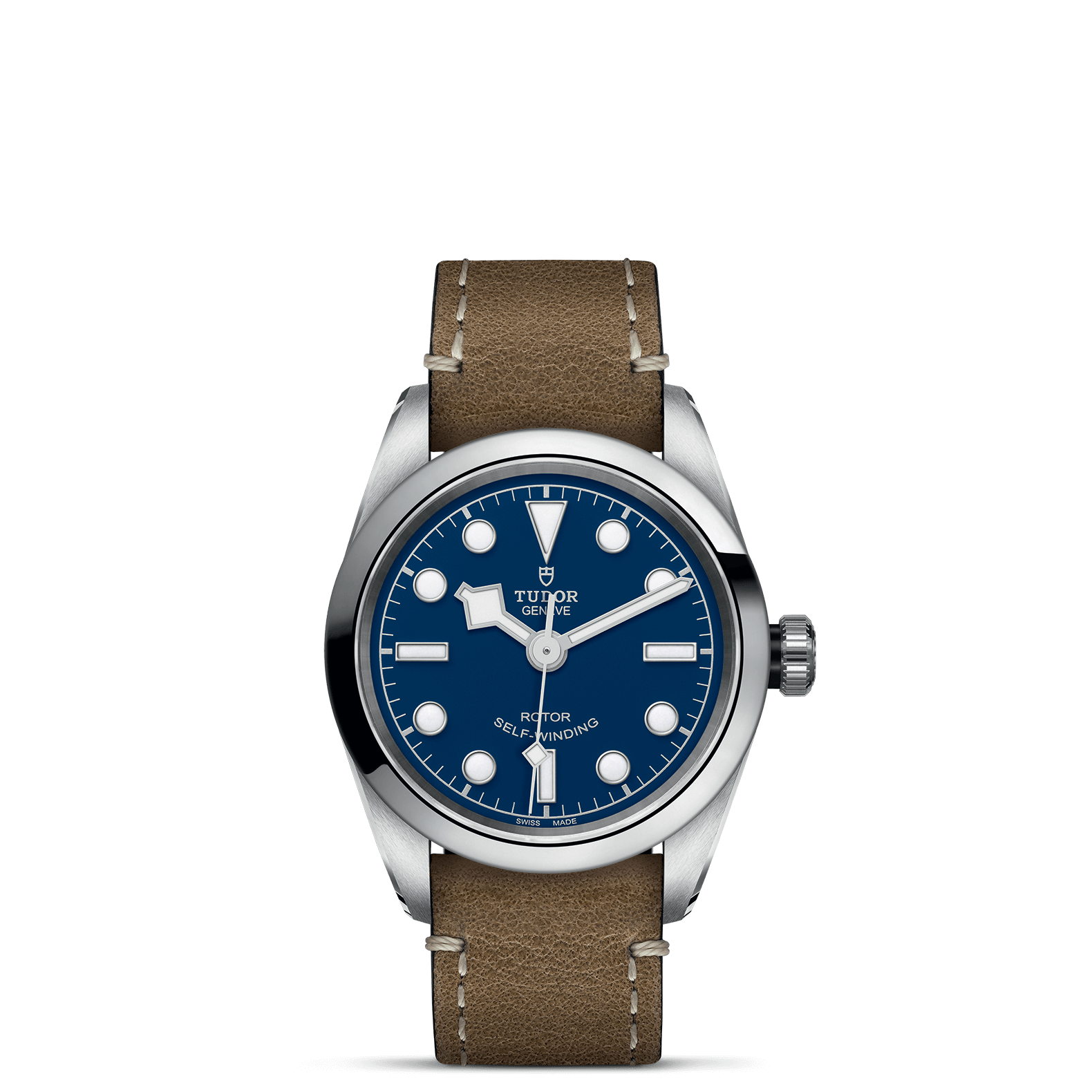 不锈钢旋入式上链表冠,饰以浮雕帝舵表玫瑰标志,配黑色阳极氧化铝上链表冠轴