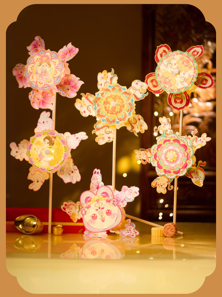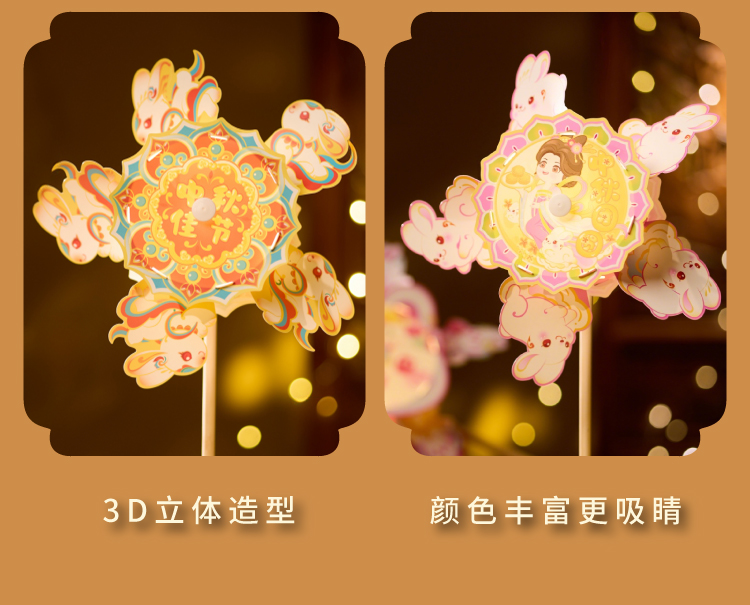 【供】中秋节好运兔子风车灯笼手工diy儿童制作材料包花灯装饰2025新款