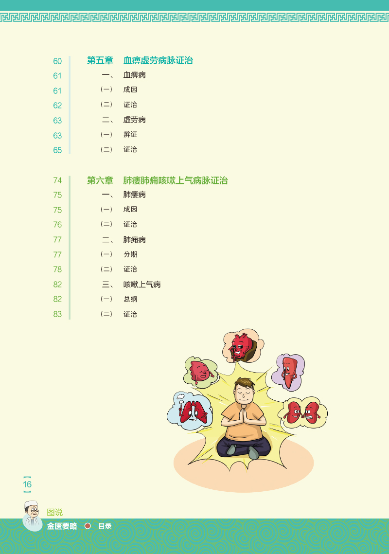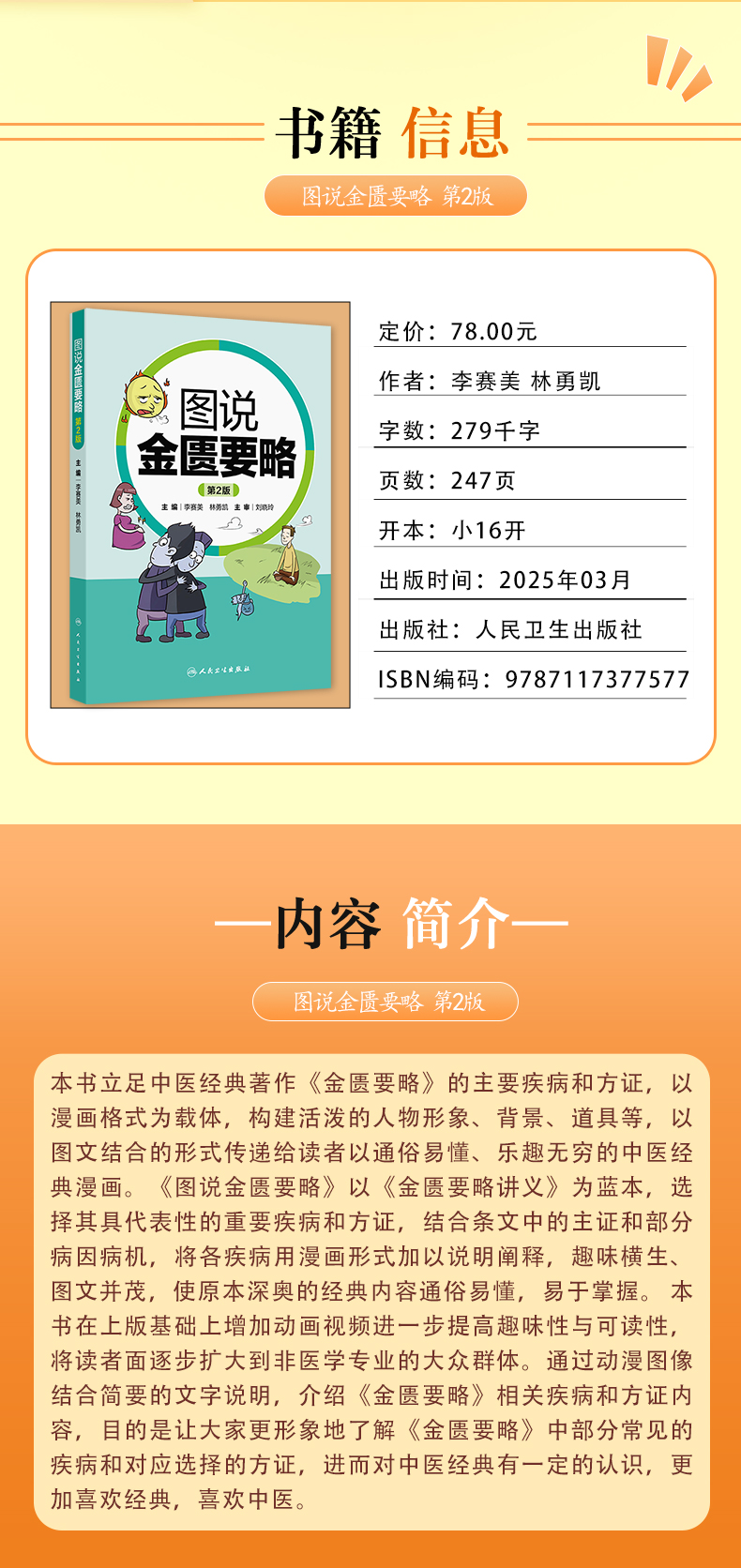 本书立足中医经典著作《金匮要略》的主要疾病和方证,以漫画格式为载体,构建活泼的人物形象、背景、道具等,以图文结合的形式传递给读者以通俗易懂、乐趣无穷的中医经典漫画。《图说金匮要略》以《金匮要略讲义》为蓝本,选择其具代表性的重要疾病和方证,结合条文中的主证和部分病因病机,将各疾病用漫画形式加以说明阐释,趣味横生、图文并茂,使原本深奥的经典内容通俗易懂,易于掌握。 本书在上版基础上增加动画视频进一步提高趣味性与可读性,将读者面逐步扩大到非医学专业的大众群体。通过动漫图像结合简要的文字说明,介绍《金匮要略》相关疾病和方证内容,目的是让大家更形象地了解《金匮要略》中部分常见的疾病和对应选择的方证,进而对中医经典有一定的认识,更加喜欢经典,喜欢中医。