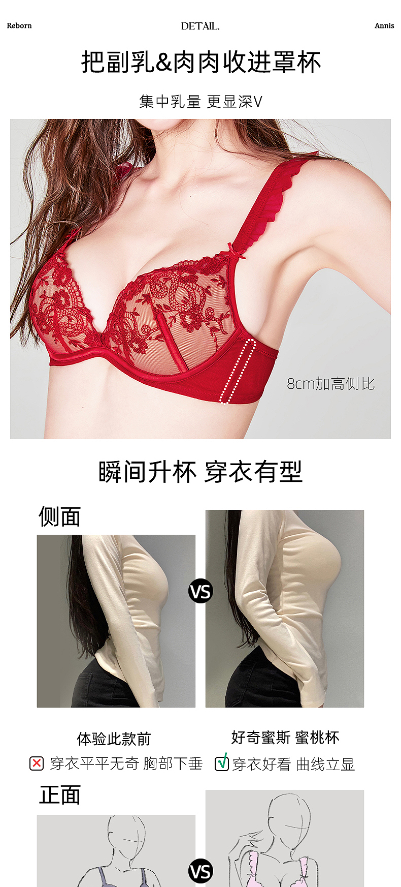 好奇蜜斯女士防走光防凸点3D立体大芒果杯深V聚拢轻薄透气乳贴-轻肤氧气乳贴