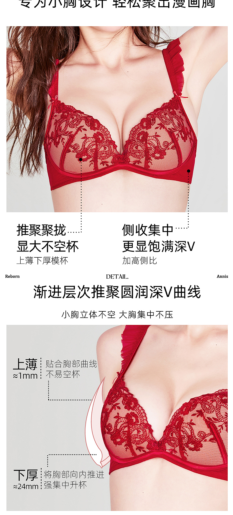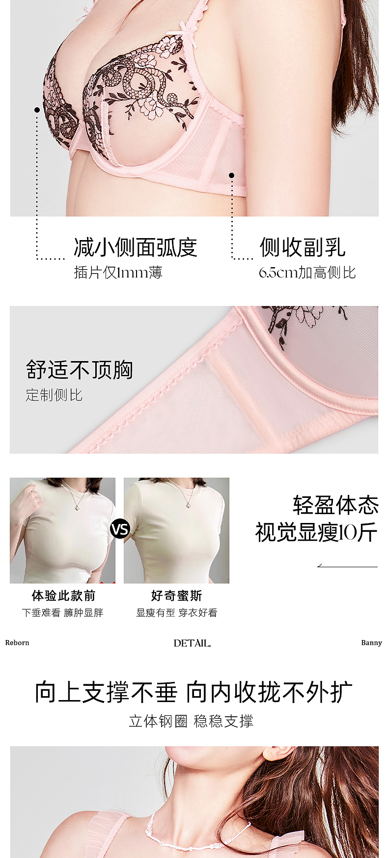 好奇蜜斯法式性感内衣女小胸刺绣文胸罩套装大胸显小薄纯欲防下垂 邦妮