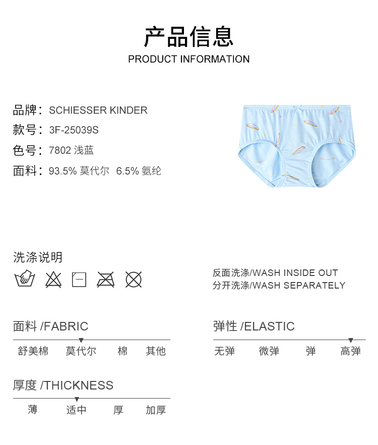 SCHIESSER德国舒雅儿童女童莫代尔面料三角小裤3F/25039S
