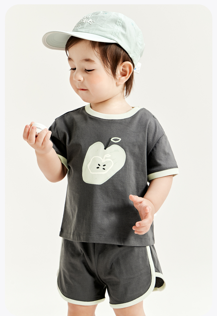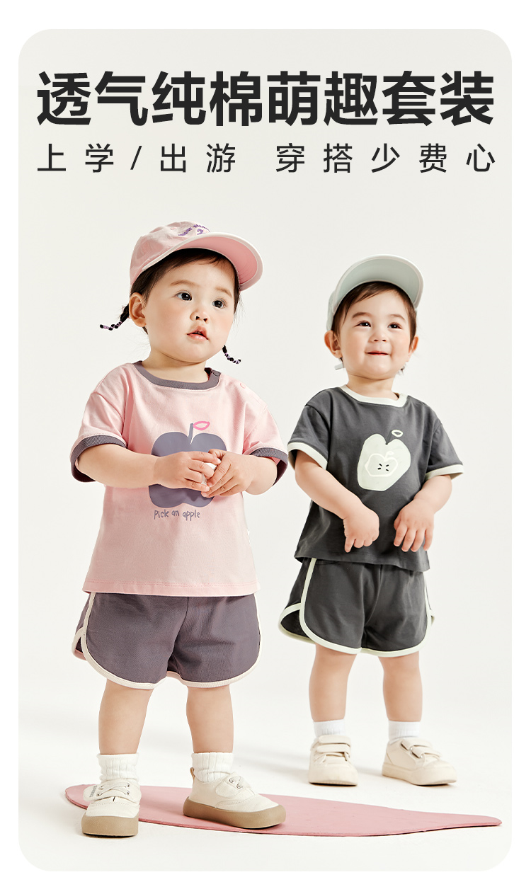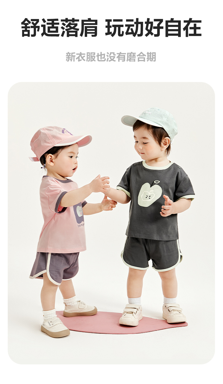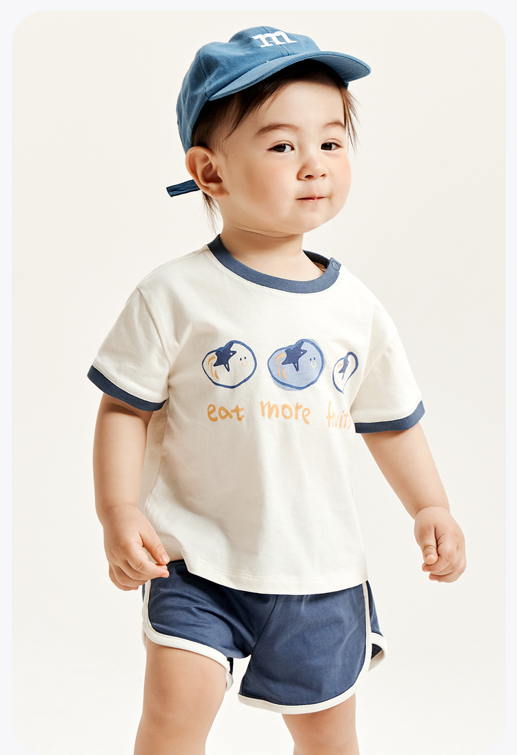 迷你巴拉男童女童宝宝短袖套装夏季亲肤纯棉印花运动两件套