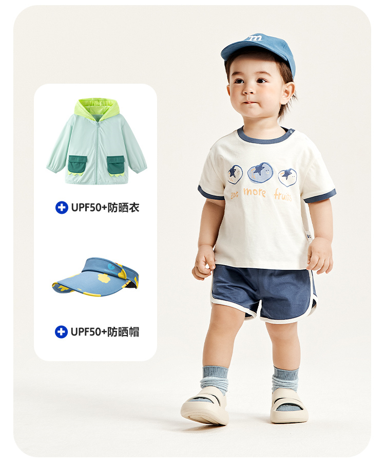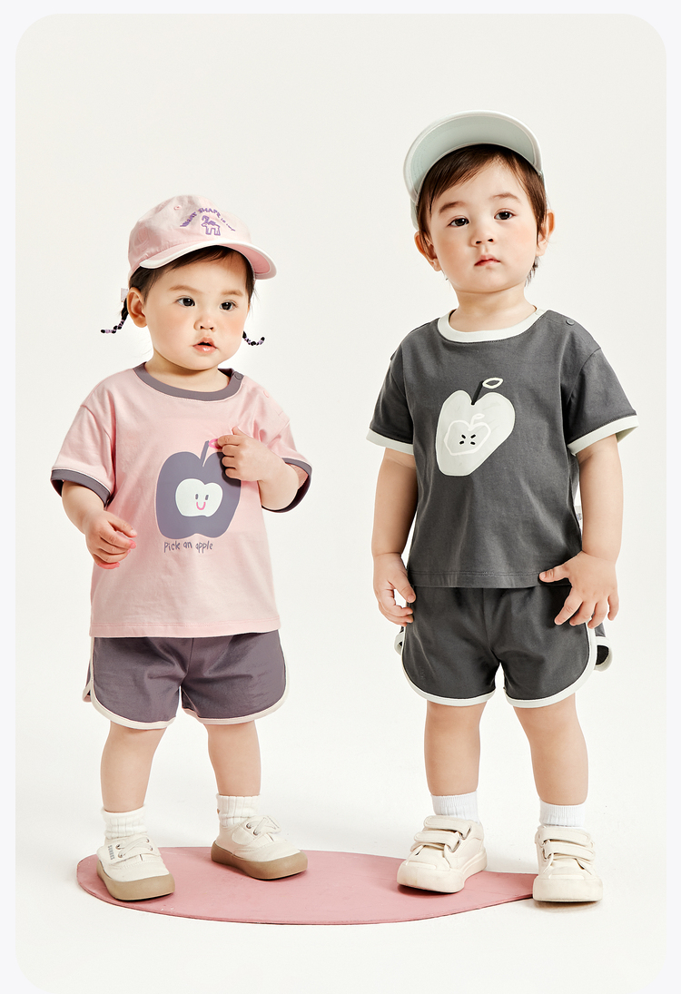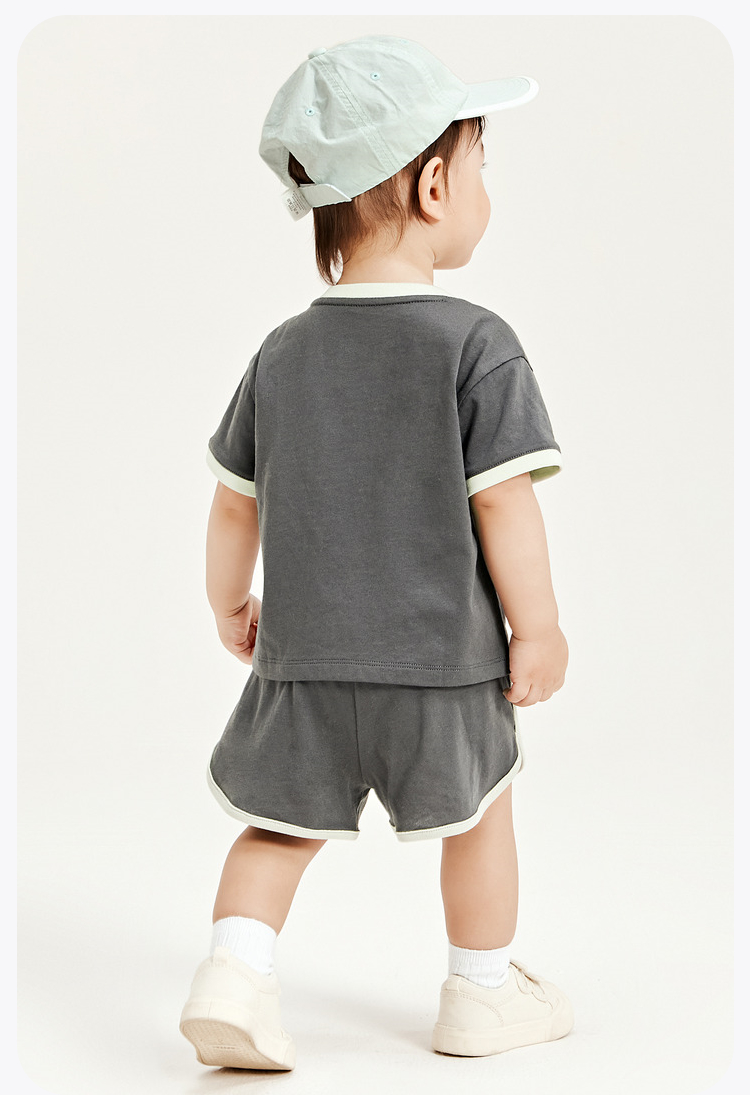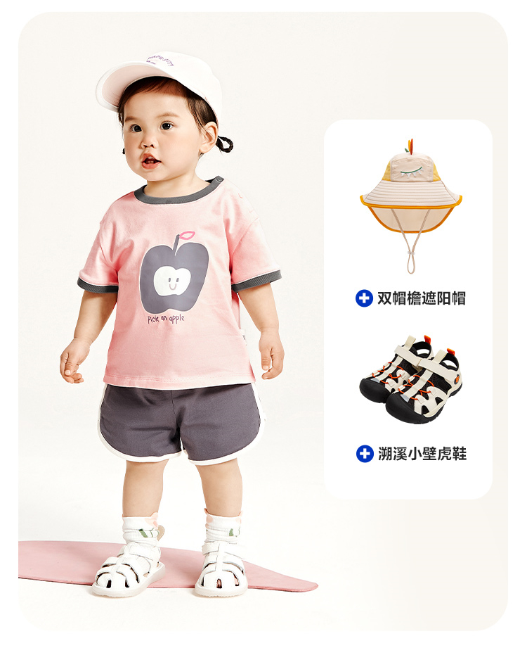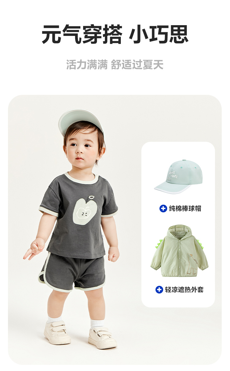 迷你巴拉男童女童宝宝短袖套装夏季亲肤纯棉印花运动两件套