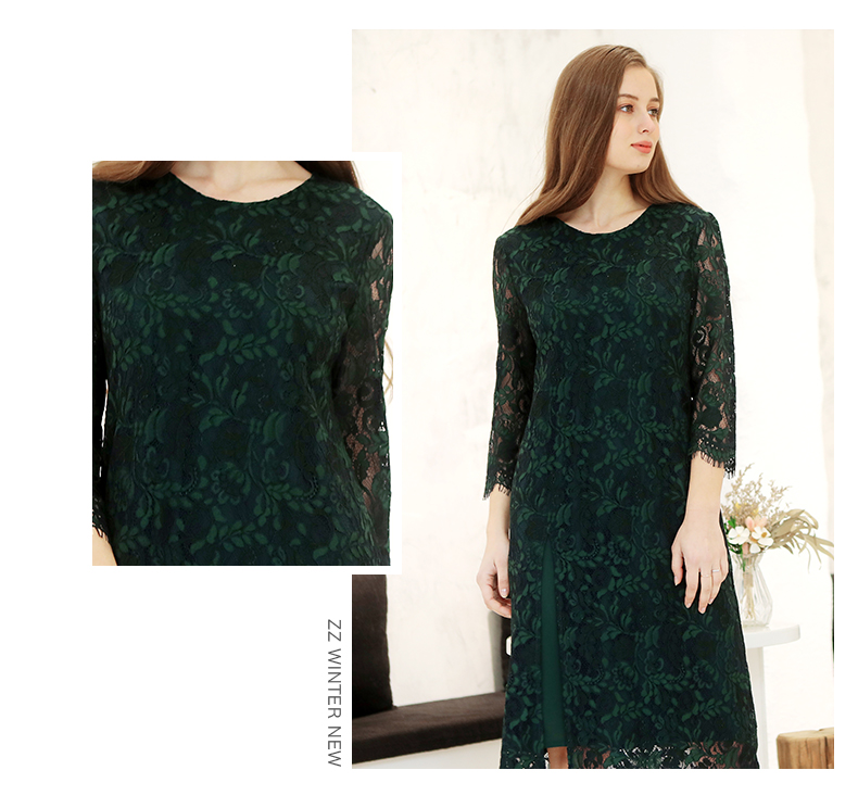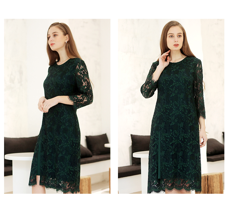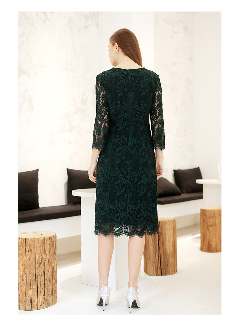 秋季新款气质优雅减龄显瘦蕾丝七分袖连衣裙E93LL22