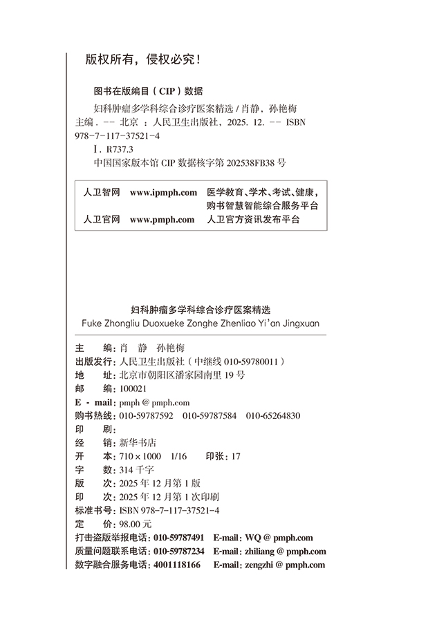 妇科肿瘤多学科综合诊疗医案精选 肖静 孙艳梅 适合广大妇科医师、医学院校师生及其他相关医学专业人士参考阅读 人民卫生出版社