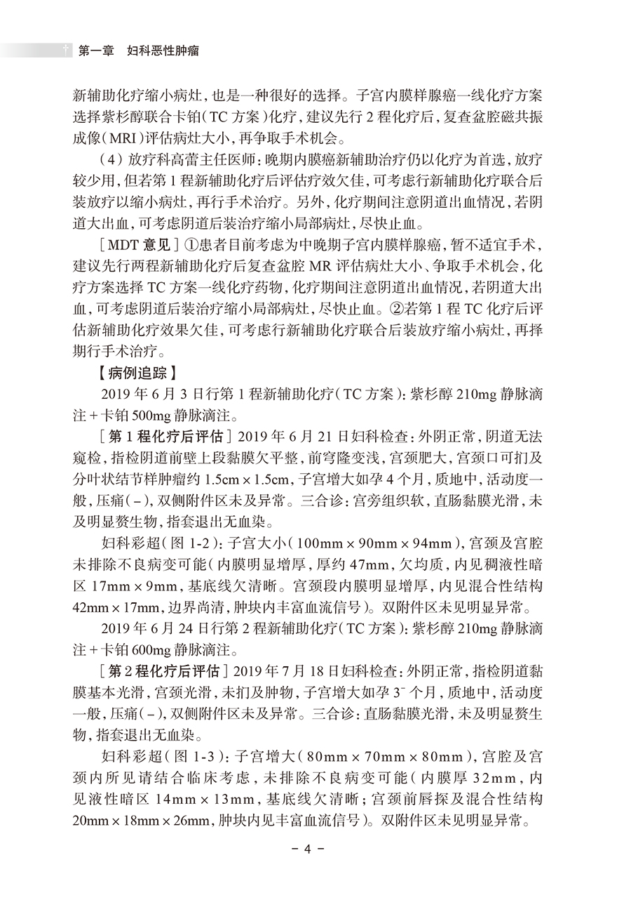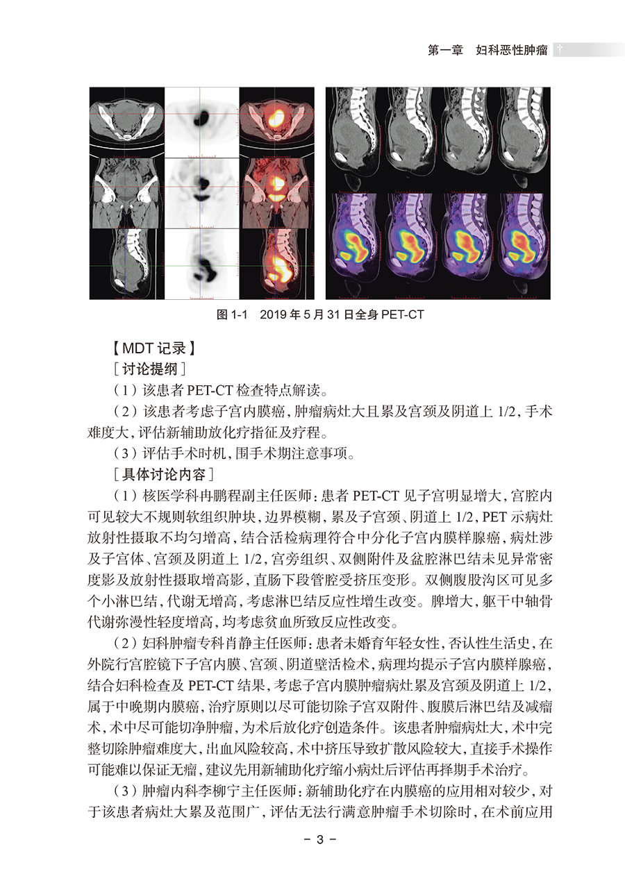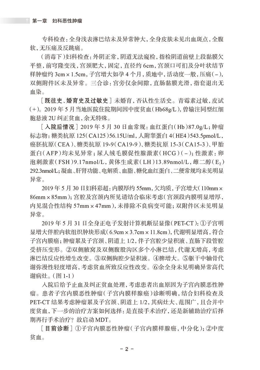 本书以多学科诊疗(multi-disciplinary treatment,MDT)为核心,精心筛选了20个临床有代表性的案例,每个病案均详细记录临床诊治过程、存在的诊治难点以及多学科团队为患者制订个体化治疗策略、后续治疗方案实施和追踪随访等,展示了不同学科专家在诊断和治疗过程中的角色和贡献,结合各专科的诊疗指南和新进展对于临床常见困惑展开思考与讨论,其中还记录了在妇科肿瘤合适的节点使用中医药的治疗让患者重获健康。虽然都是很专业的临床案例,但每一个案例专家们的分析丝丝入扣,诊疗过程循序渐进,跌宕起伏,病例分析总结有理有据,是一本阅读起来觉得十分有趣的专业书。