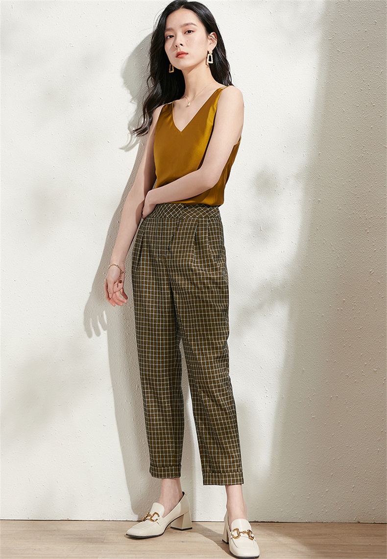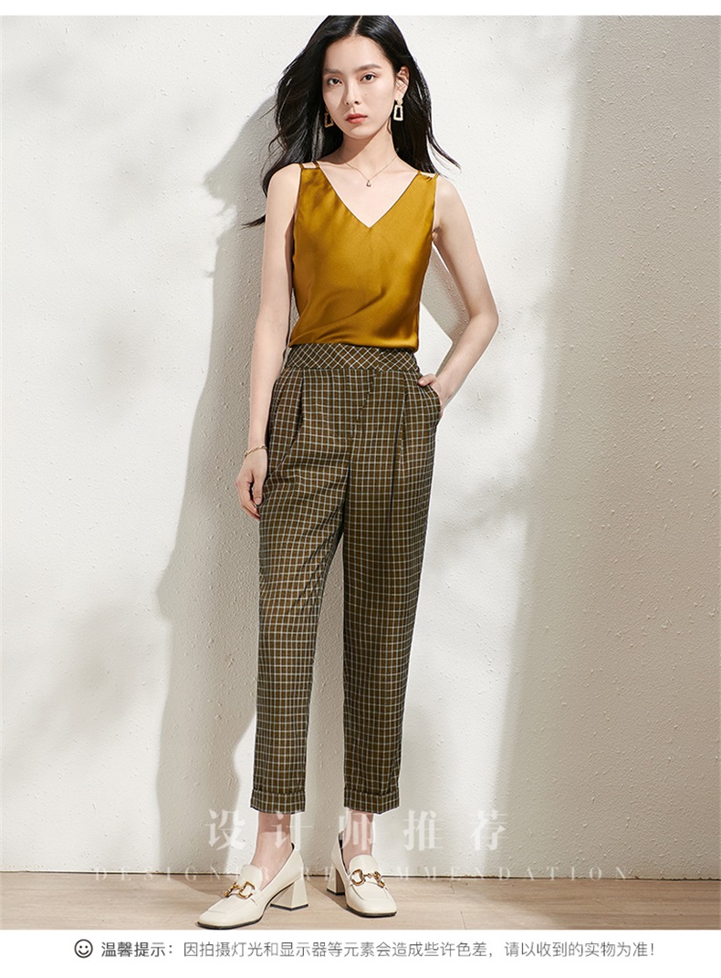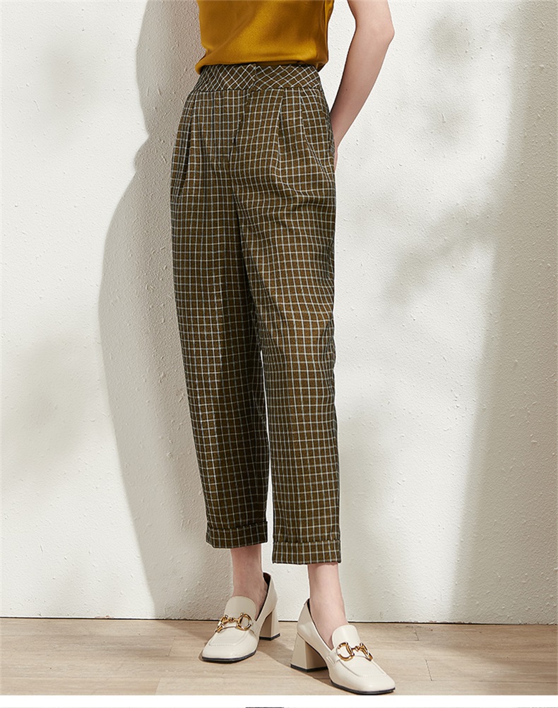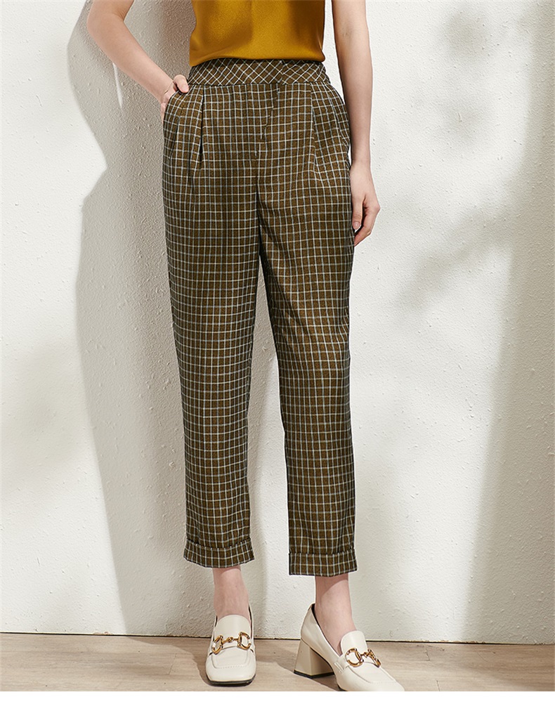 剩S/M 芳外春季新款时尚百搭小格纹哈伦裤通勤显瘦九分休闲裤女0272