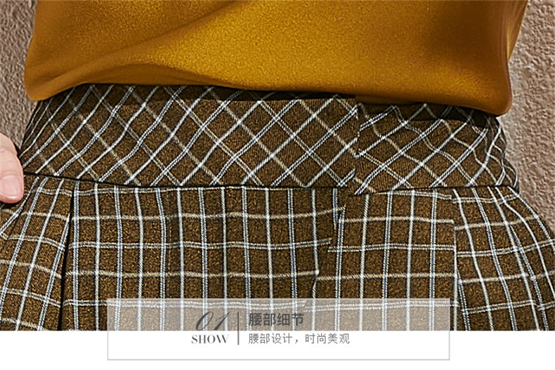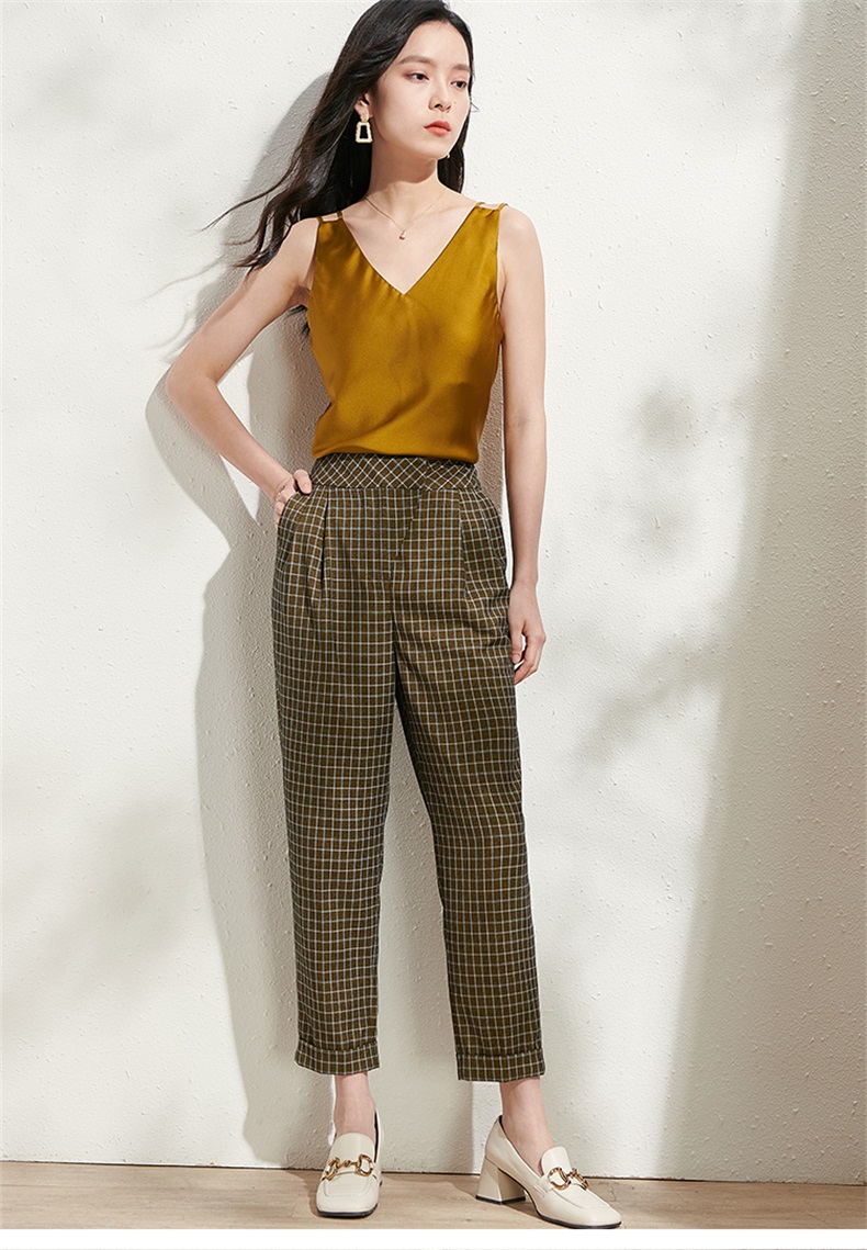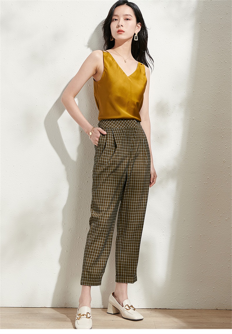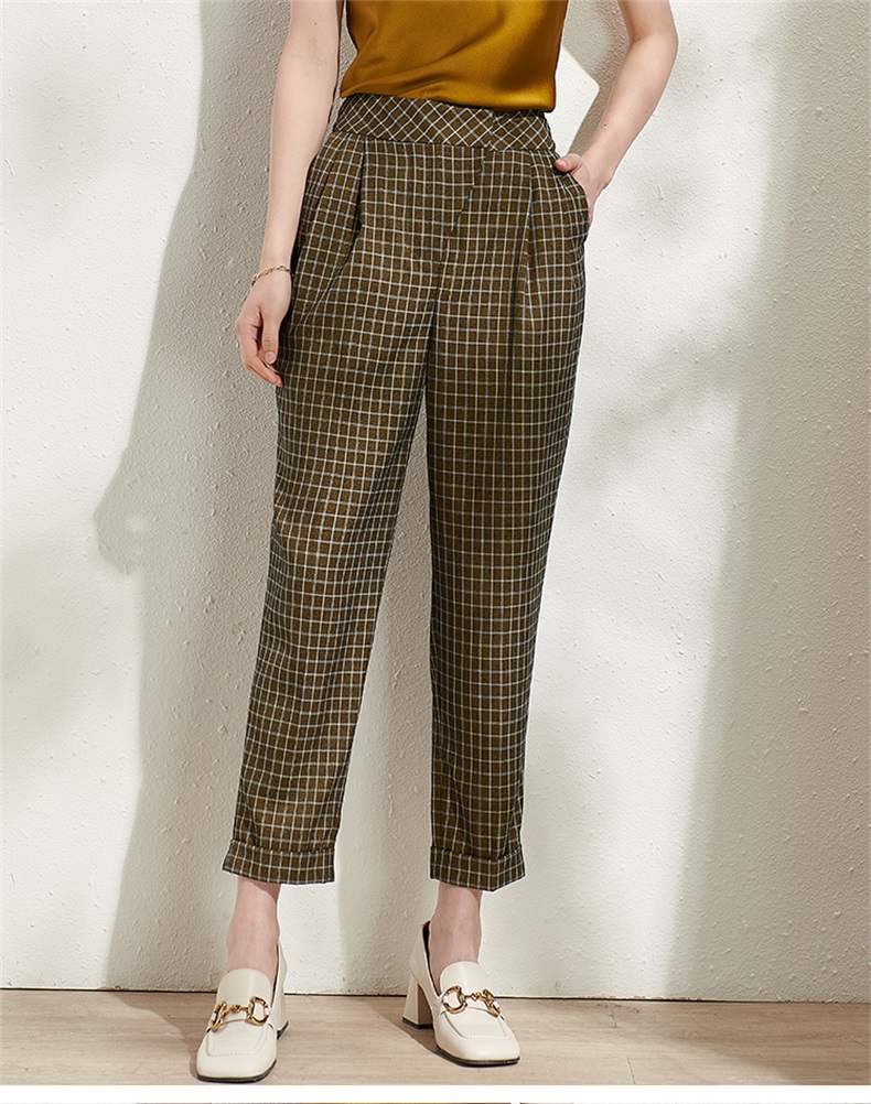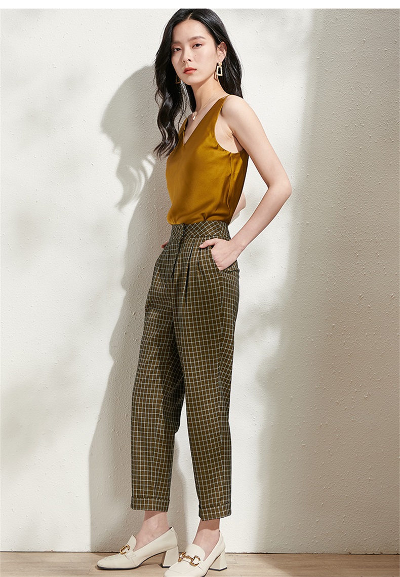 剩S/M 芳外春季新款时尚百搭小格纹哈伦裤通勤显瘦九分休闲裤女0272
