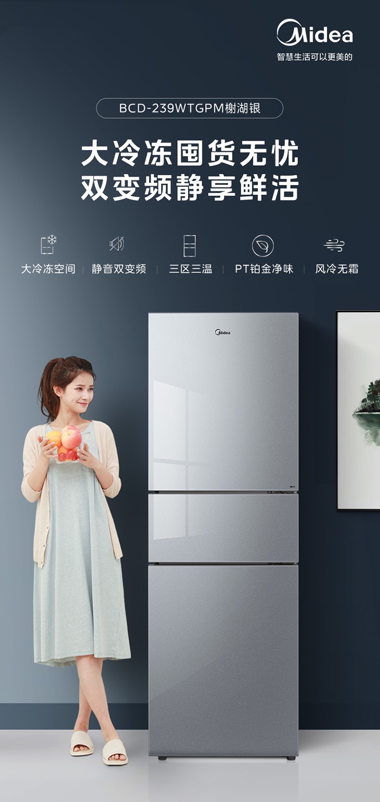美的(Midea)(202831)冰箱 BCD-239WTGPM 榭湖银