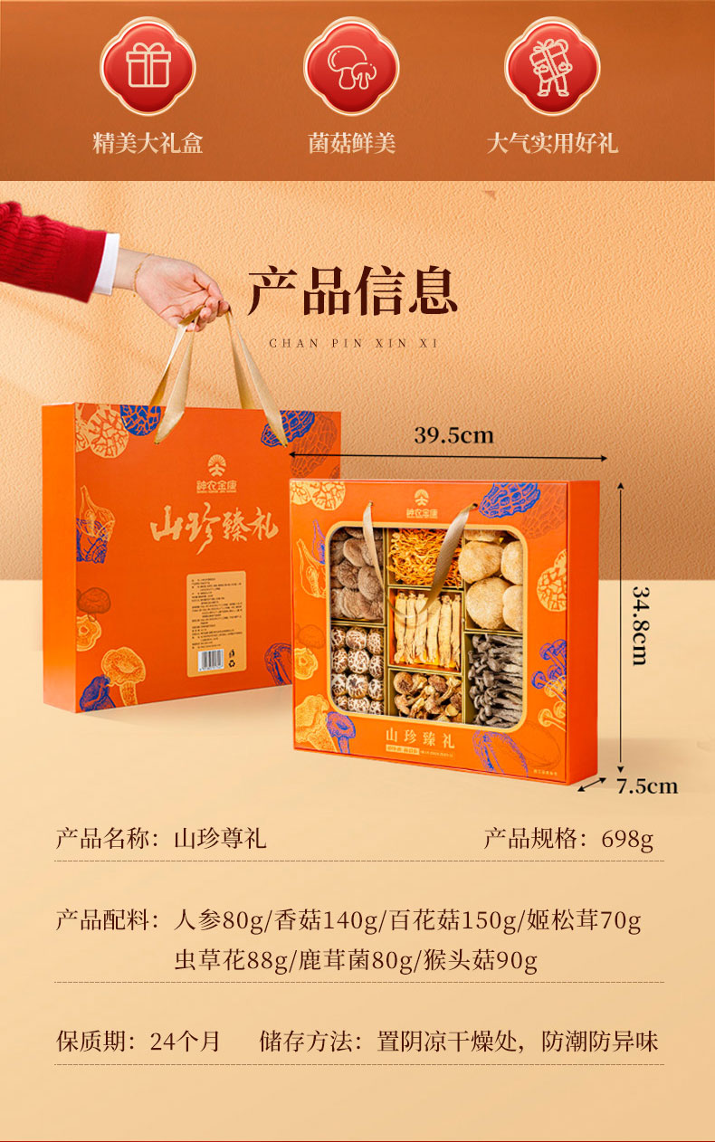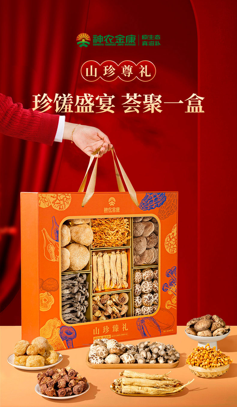 【中秋礼盒】神农金康 山珍人参菌菇干货礼盒装698g 新中式滋补礼 原生态真滋补 喝护家人健康