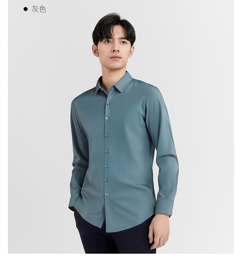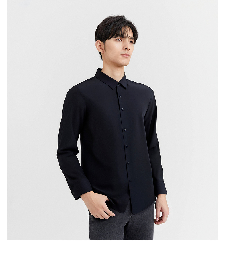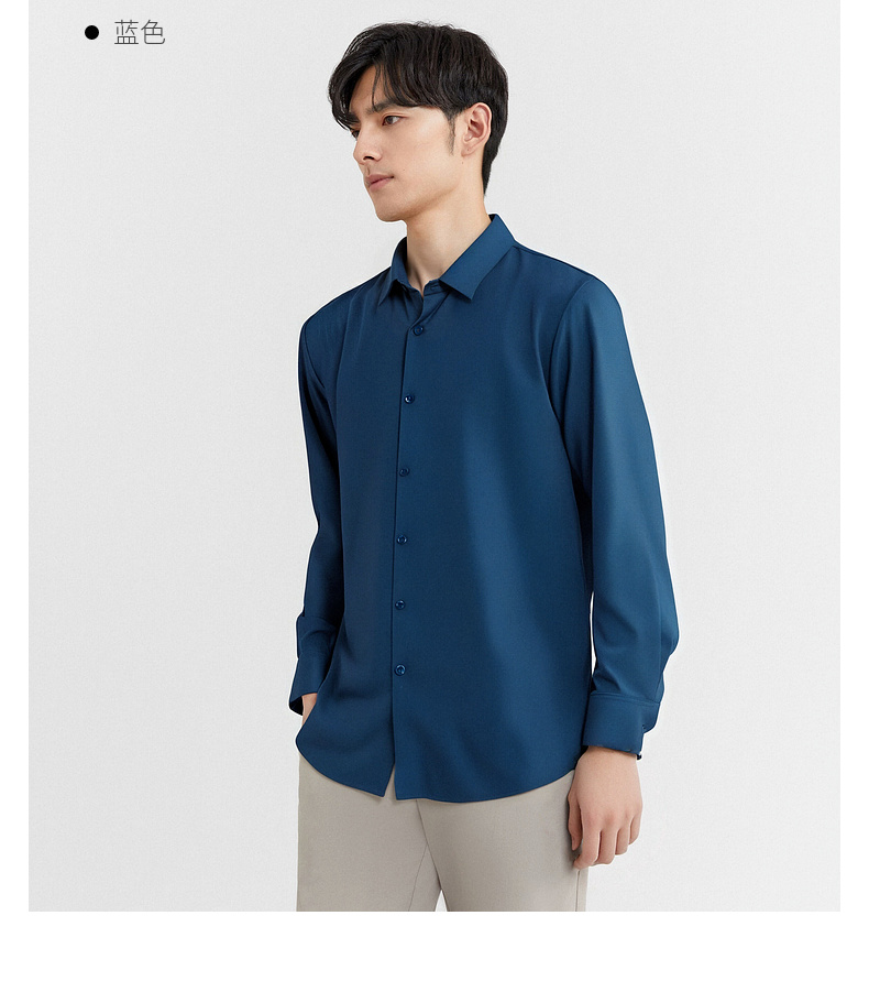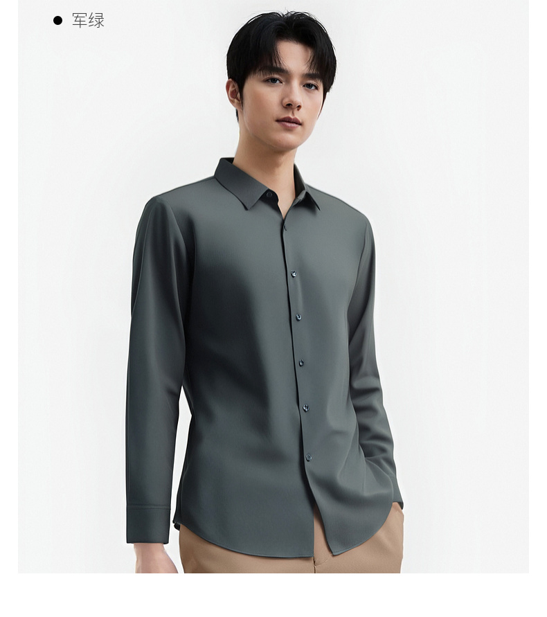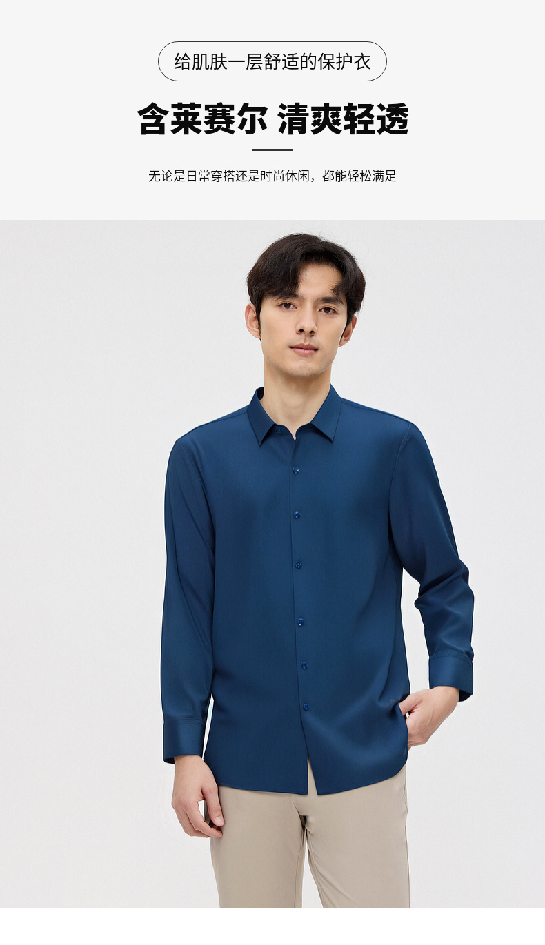 【含天丝】圣得西男士衬衫2025新款商务通勤高弹纯色休闲长袖上衣