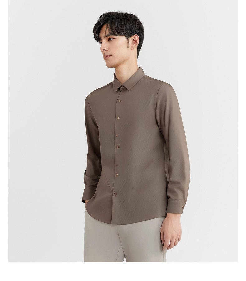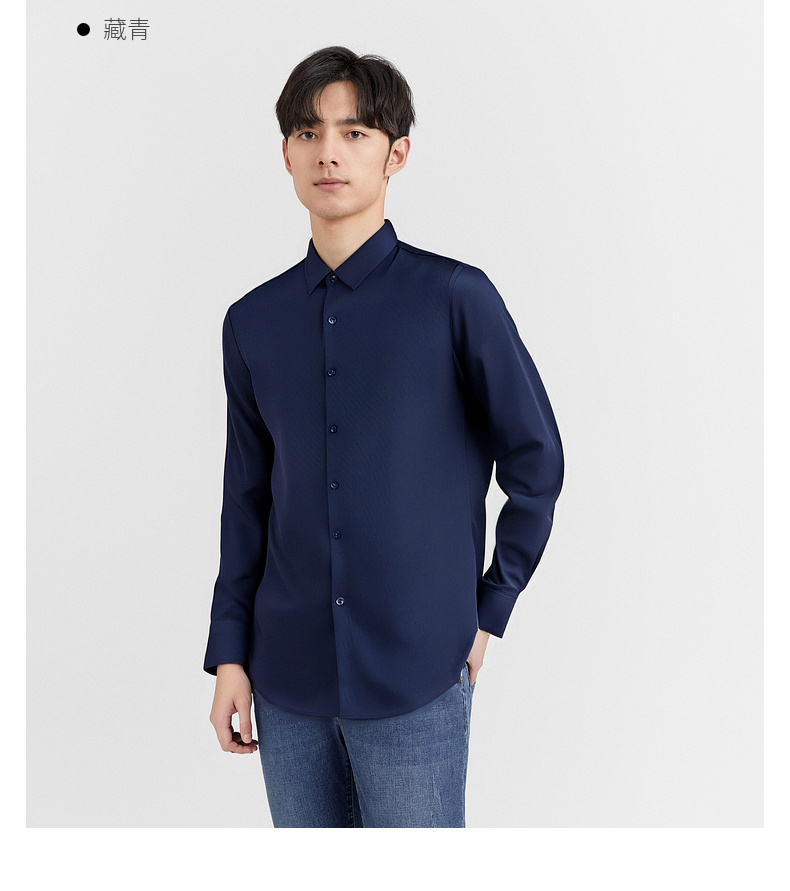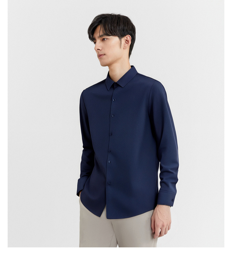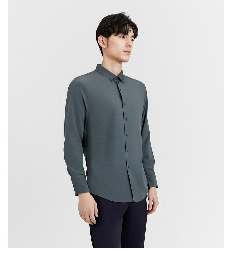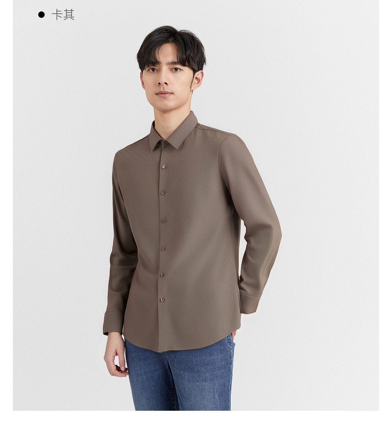 【含天丝】圣得西男士衬衫2025新款商务通勤高弹纯色休闲长袖上衣