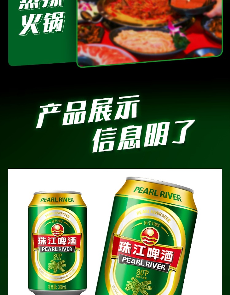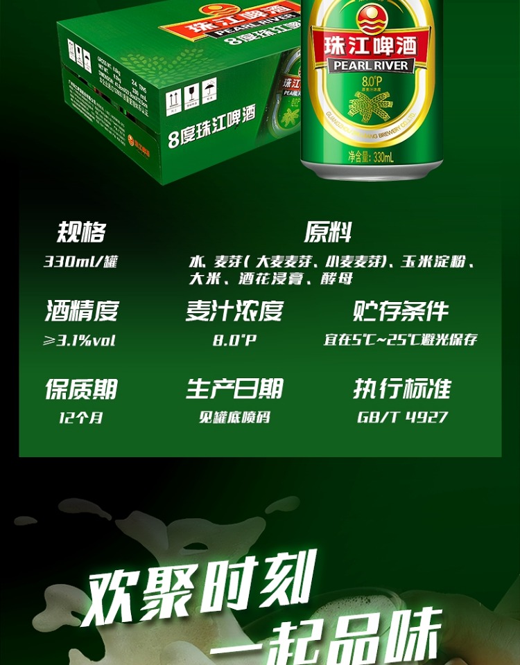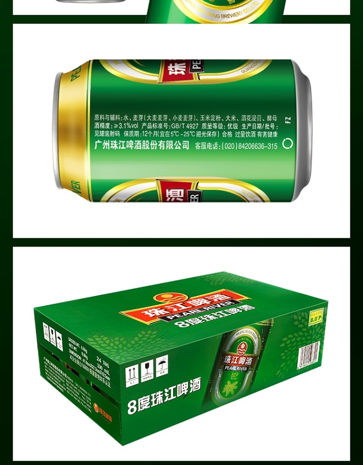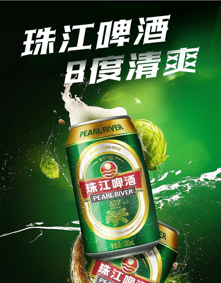 珠江8度啤酒 24*330ML/罐