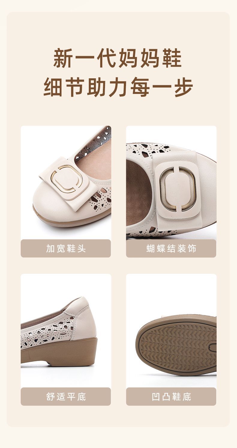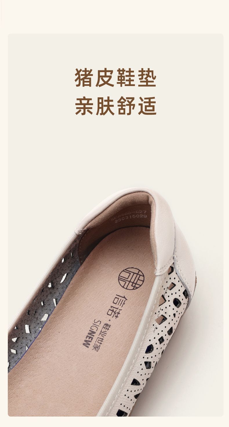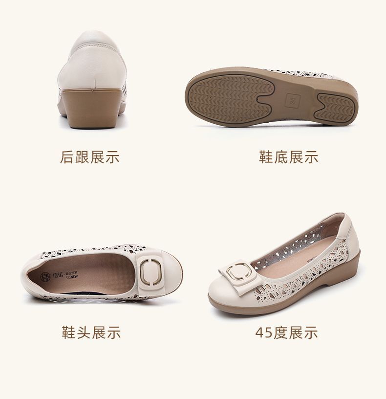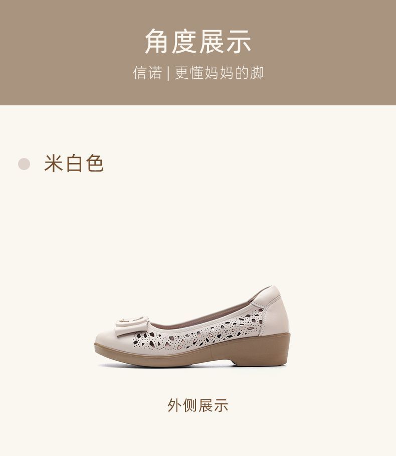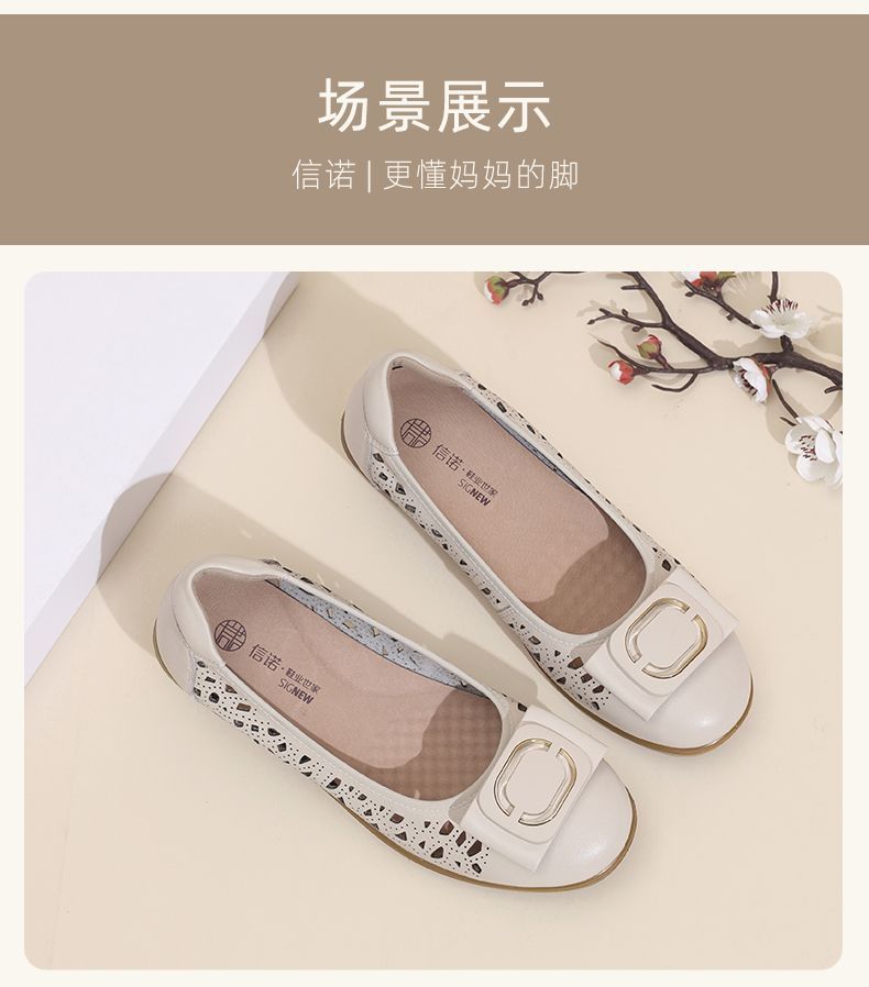 信诺妈妈鞋2025新款夏季中老年舒适透气奶奶鞋真皮软底单鞋洞洞鞋5C8565-027