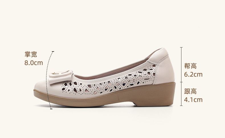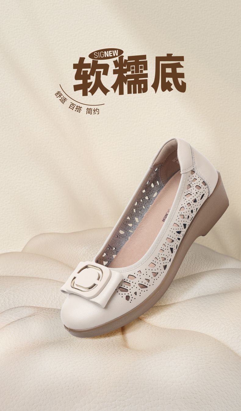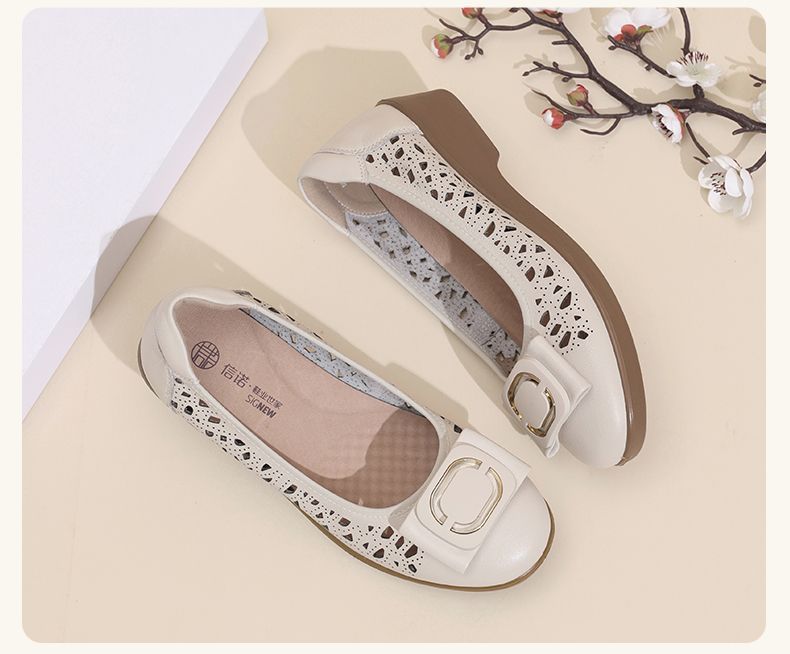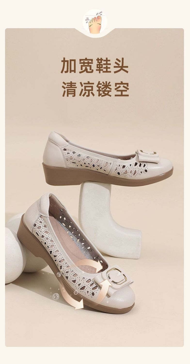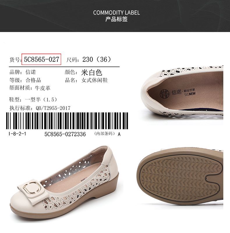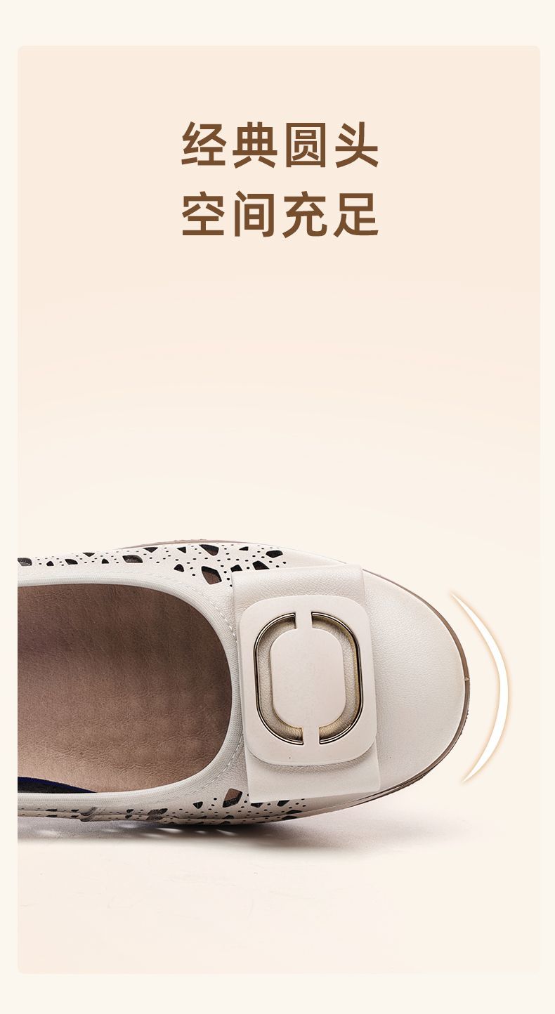 信诺妈妈鞋2025新款夏季中老年舒适透气奶奶鞋真皮软底单鞋洞洞鞋5C8565-027