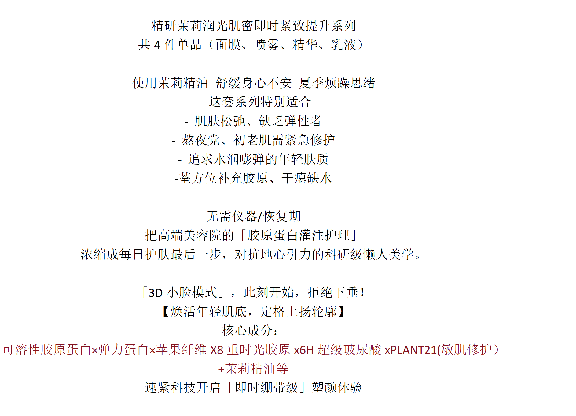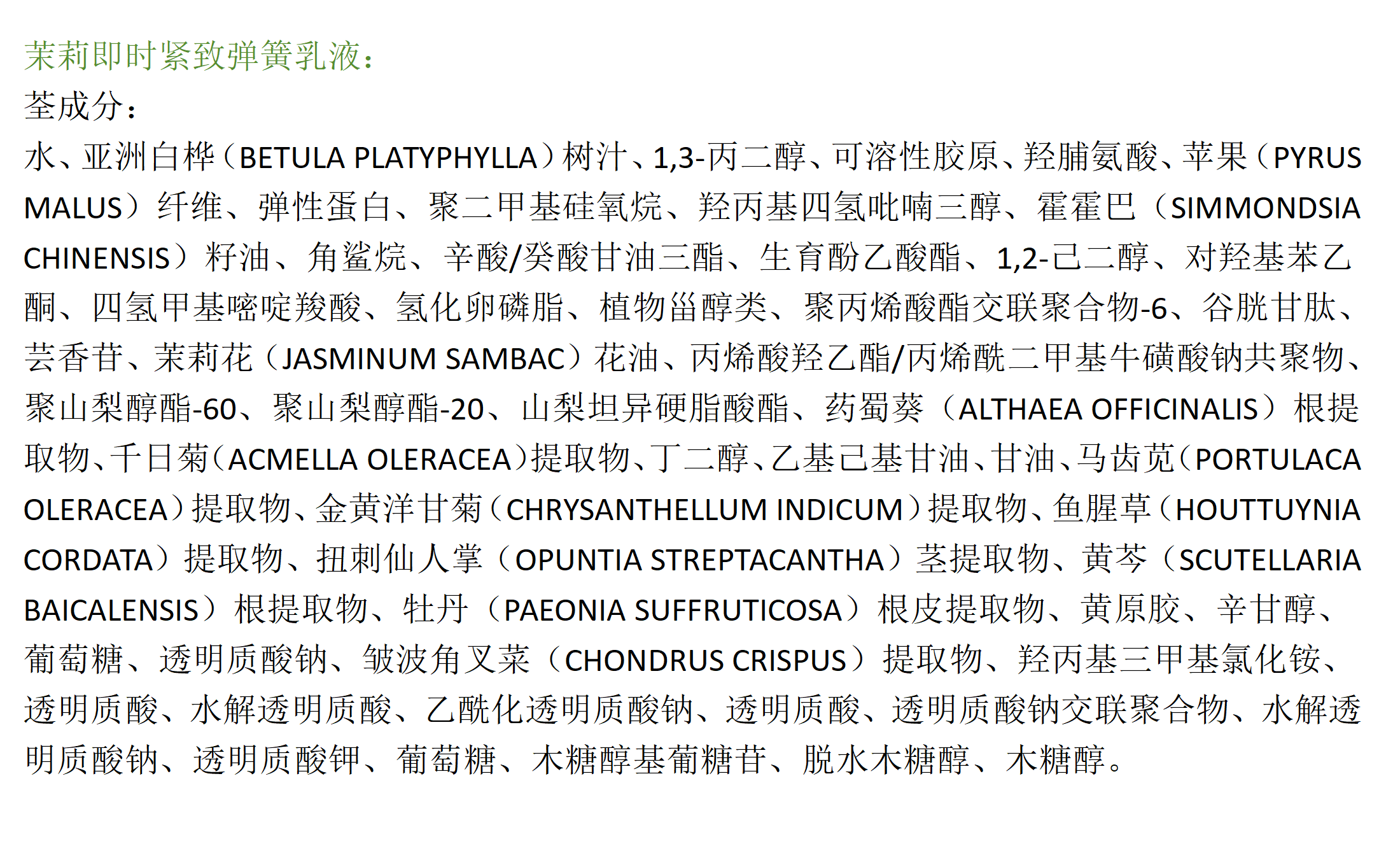 茉莉即时紧致弹簧乳液8大玻尿酸玻色因抗污染提肤色补水胶原82ml