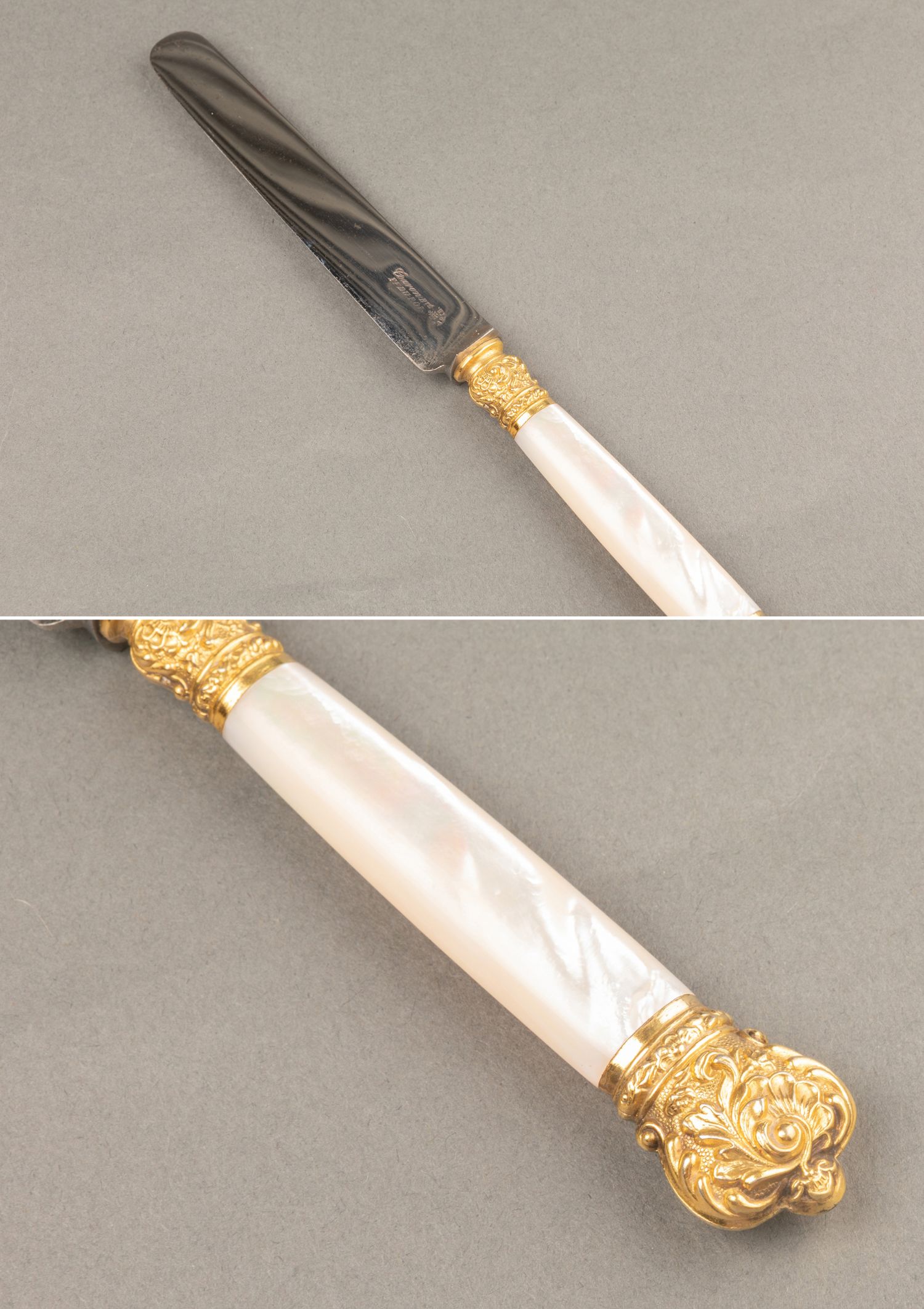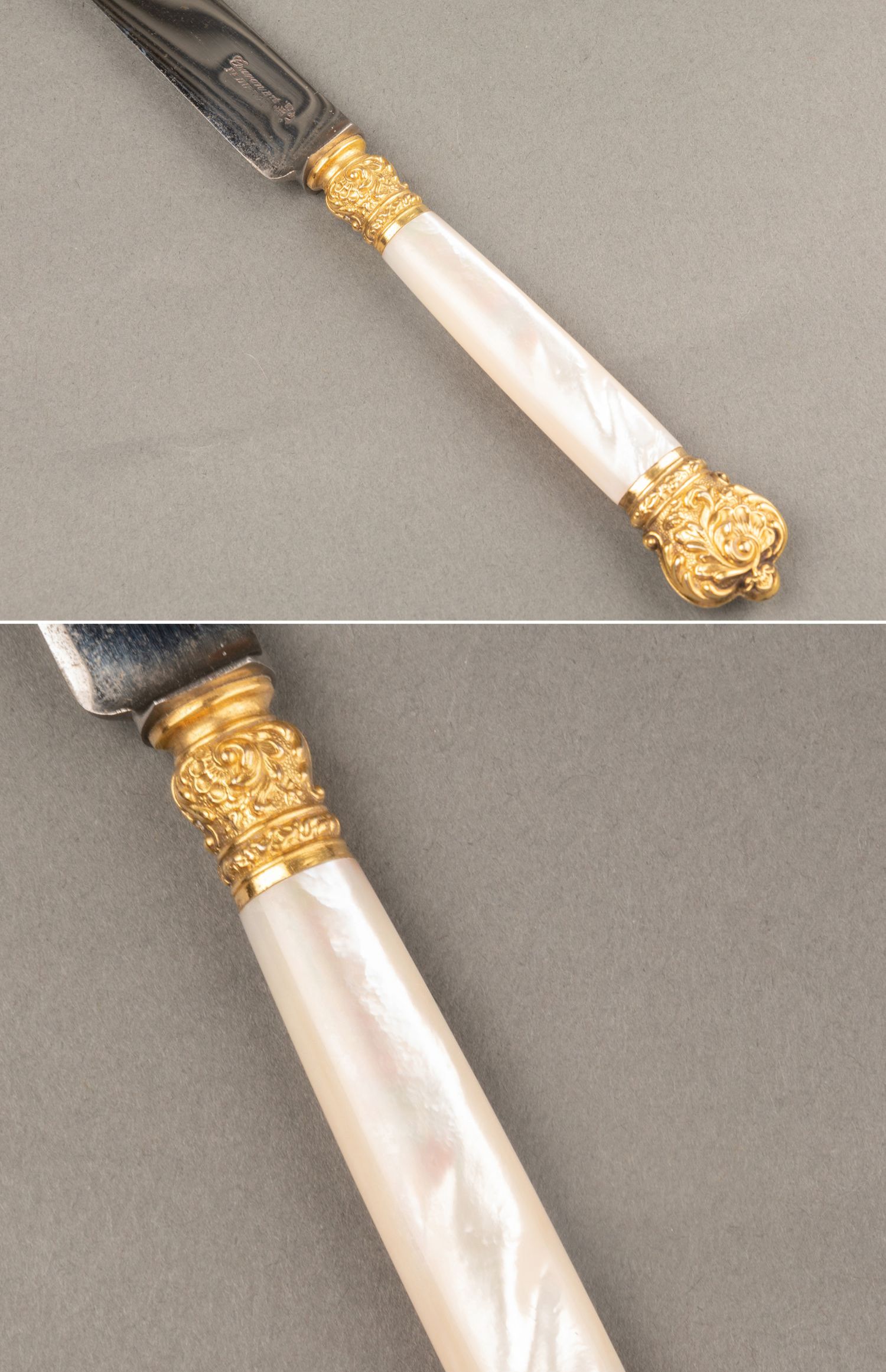 独角鹿西洋古董法国Touron工坊铜鎏金雕饰母贝手柄古董刀裁纸刀