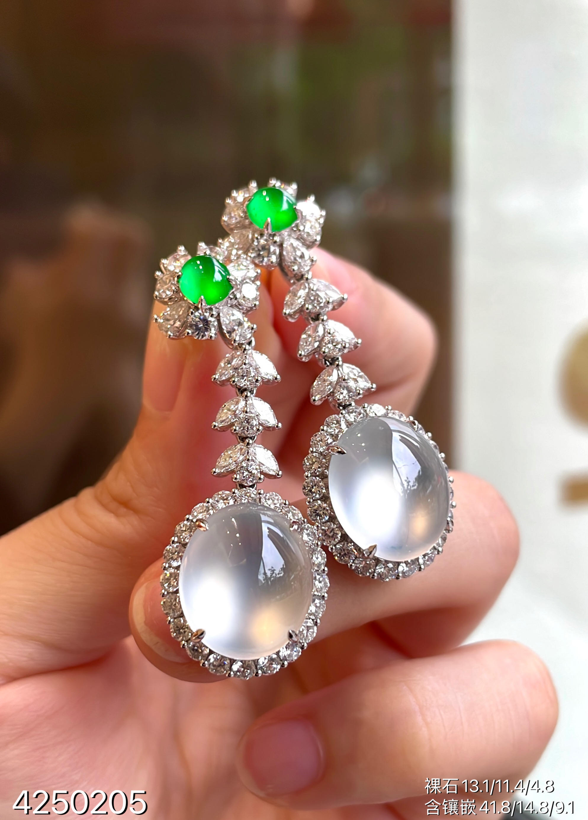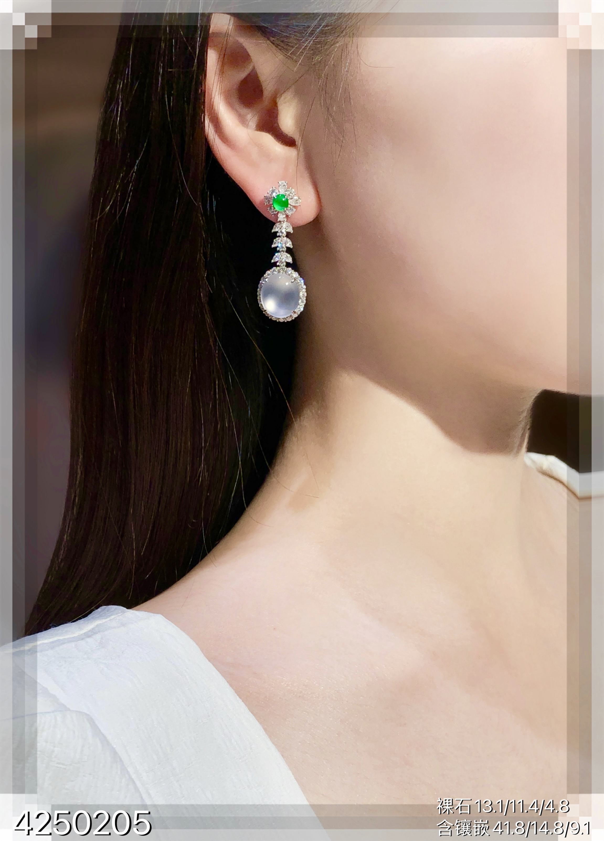 玻璃种蛋面耳坠【4250205】具体价格微信咨询