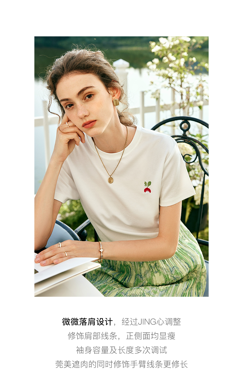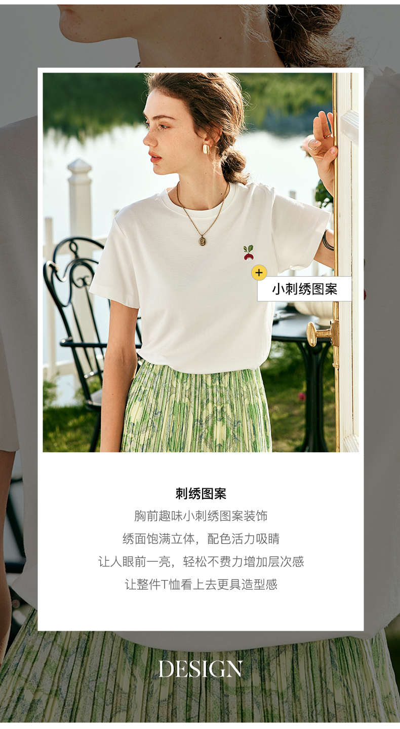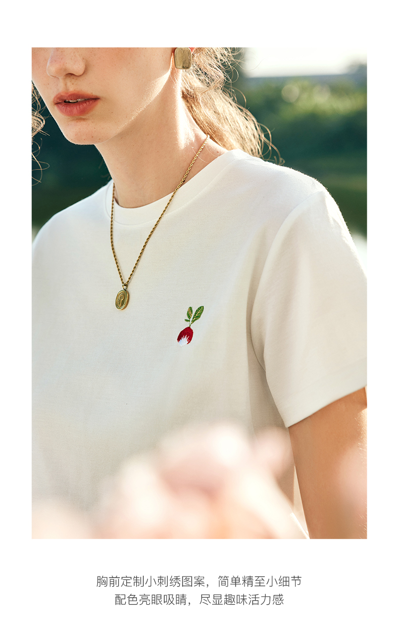 OLrain欧芮儿法式短袖T恤女夏季2023年新款宽松时尚刺绣薄款上衣