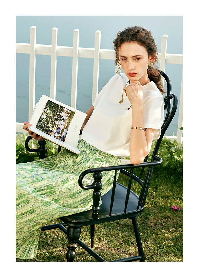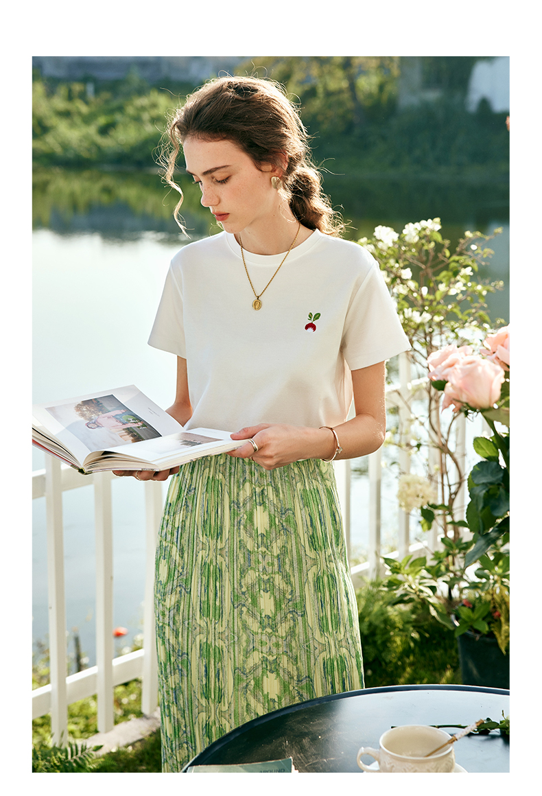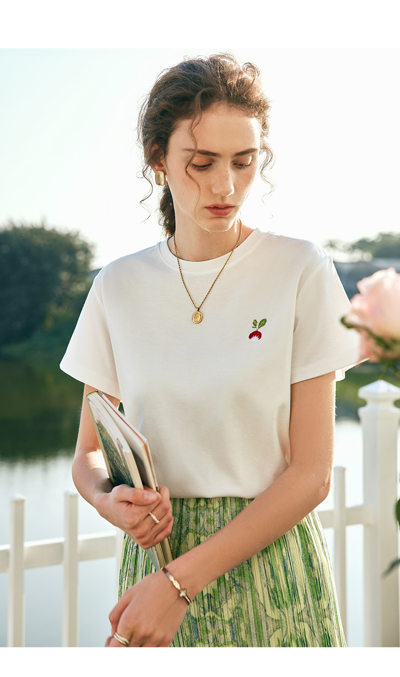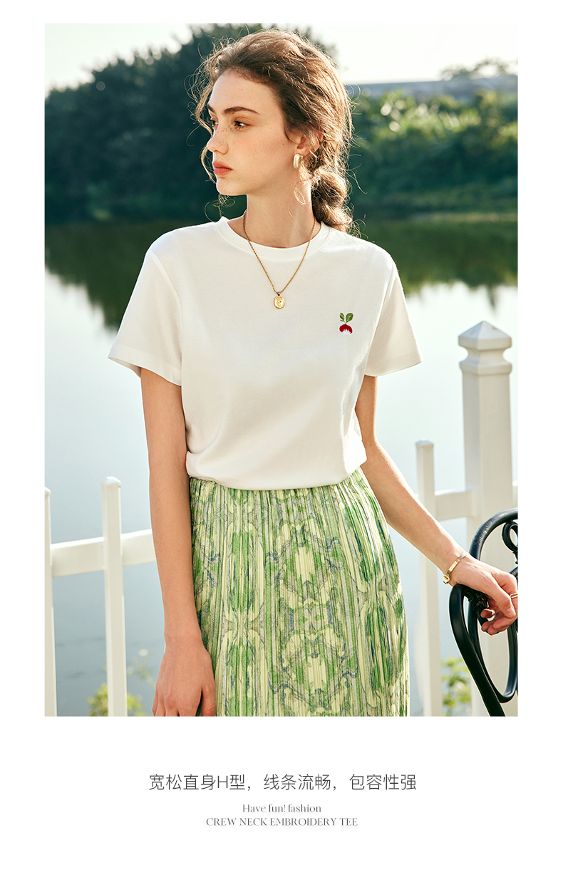 OLrain欧芮儿法式短袖T恤女夏季2023年新款宽松时尚刺绣薄款上衣