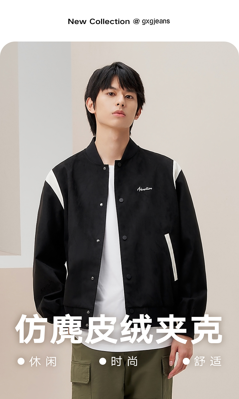 gxg.jeans男装冬季多色仿鹿皮绒棒球领夹克JFD12100041