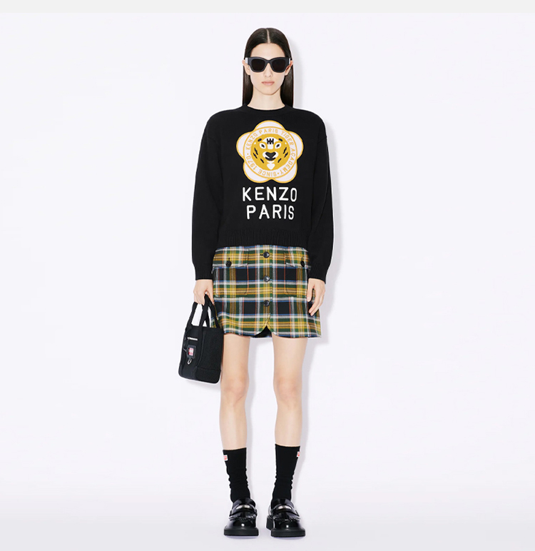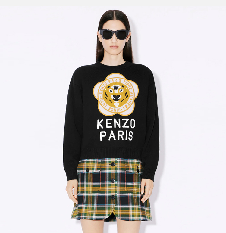 KENZO 高田贤三 女士大海棠花虎头徽标印花针织衫 黑色 FD62 PU426 3BB 99J