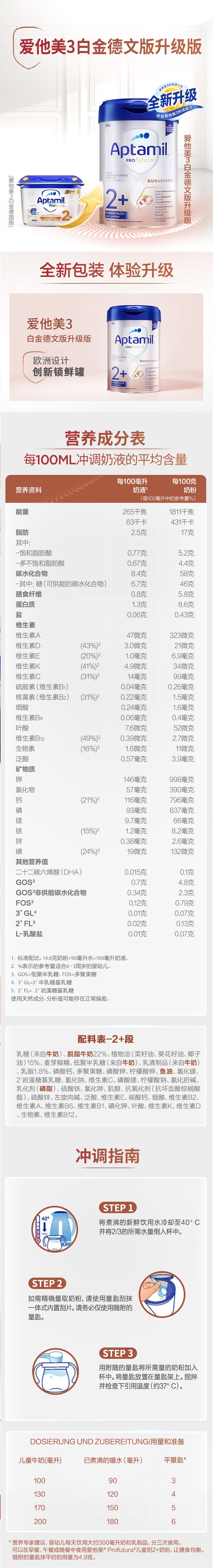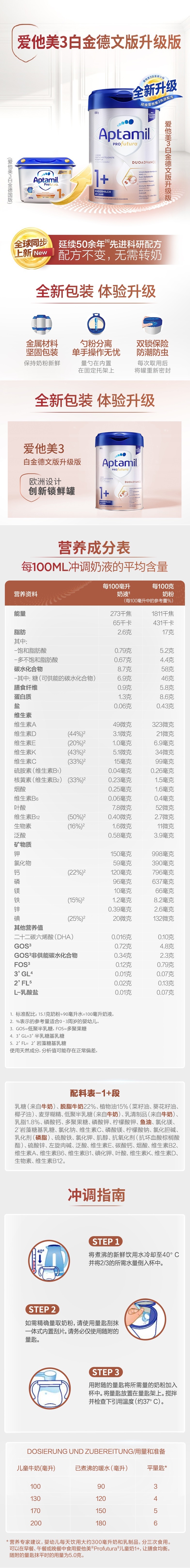 德国爱他美白金版1+ ,2+ 800g