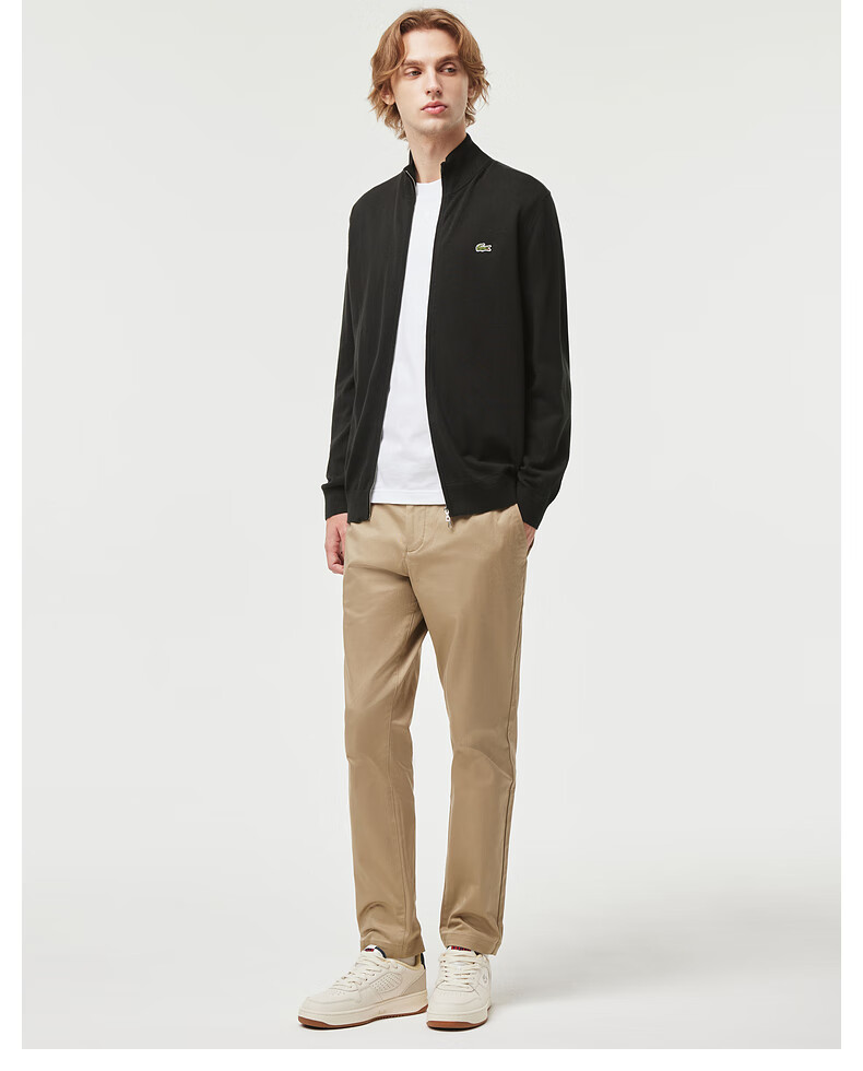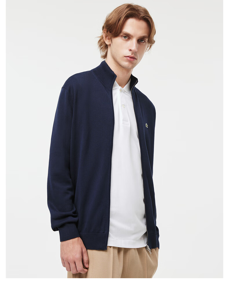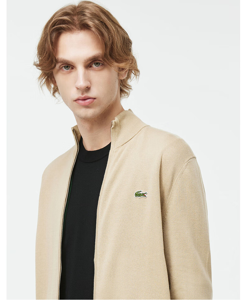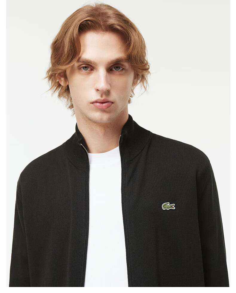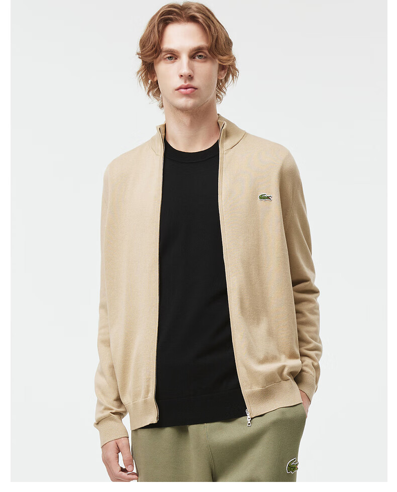 Lacoste法国鳄鱼男装新款百搭纯色立领拉链针织开衫外套AH1957-98