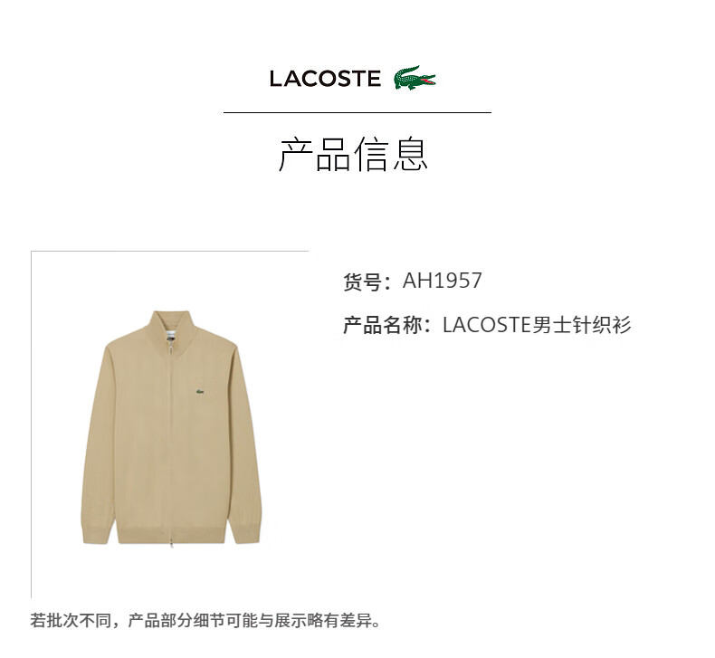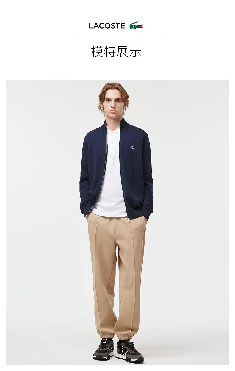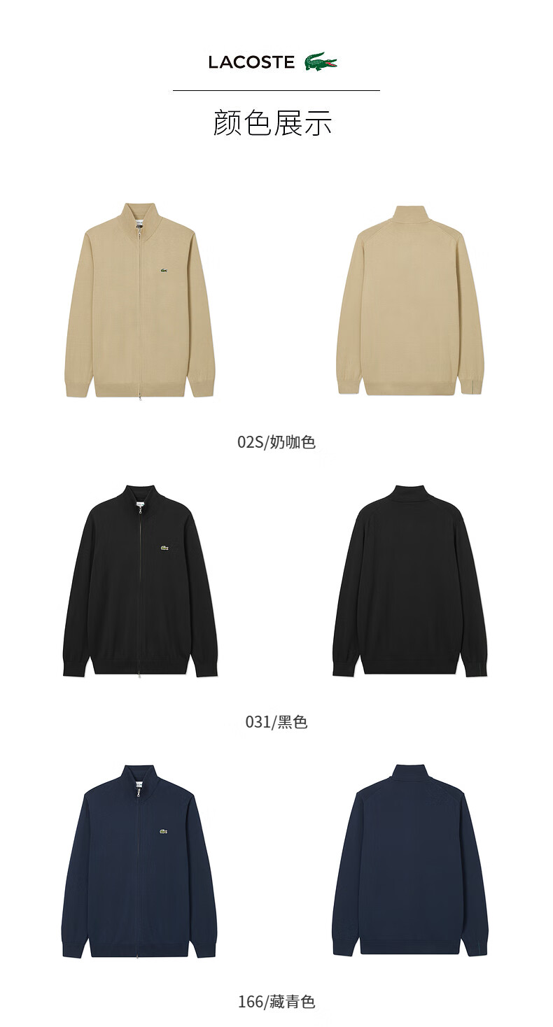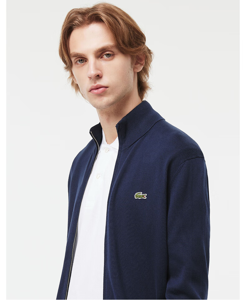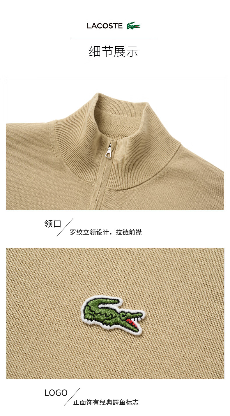 Lacoste法国鳄鱼男装新款百搭纯色立领拉链针织开衫外套AH1957-98