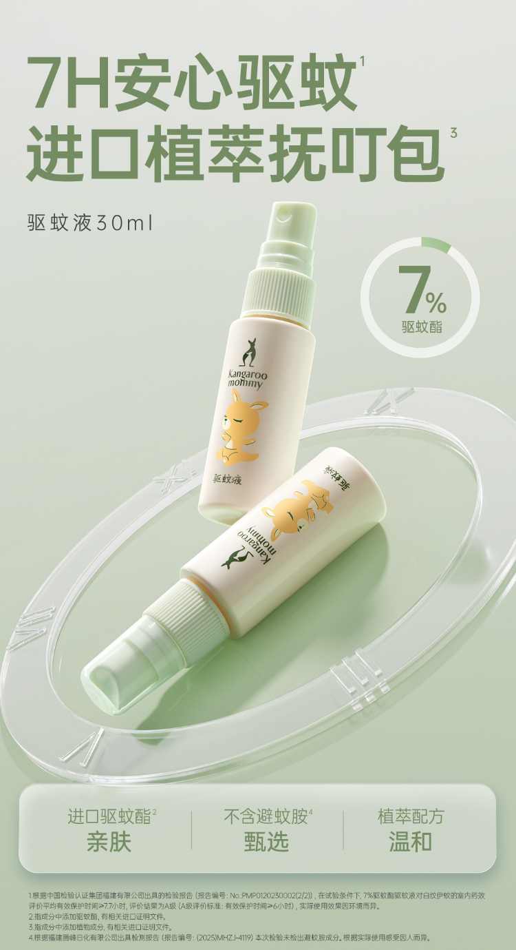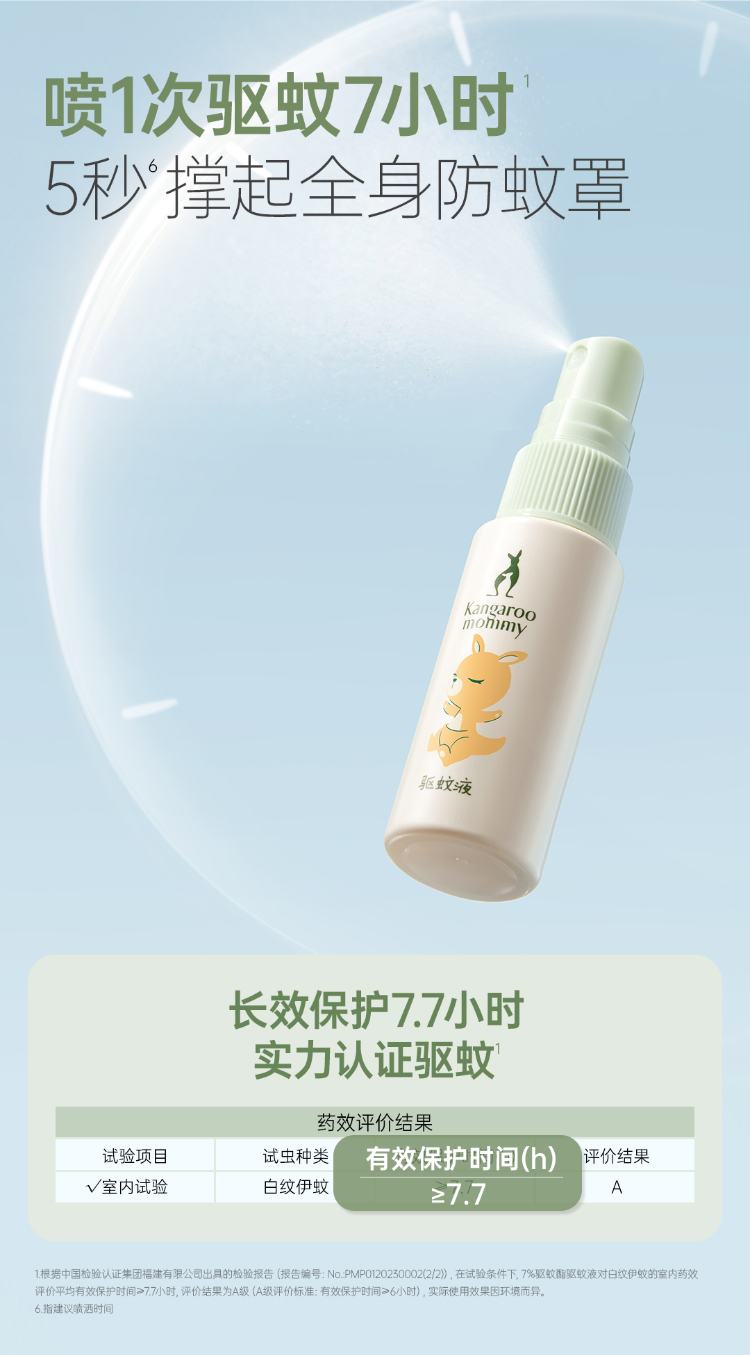 【驱蚊液】室内外防蚊驱蚊 7H长效驱蚊无惧叮咬 无避蚊胺无酒精 袋鼠妈妈驱蚊液30ml