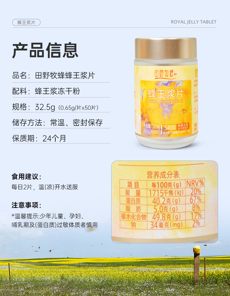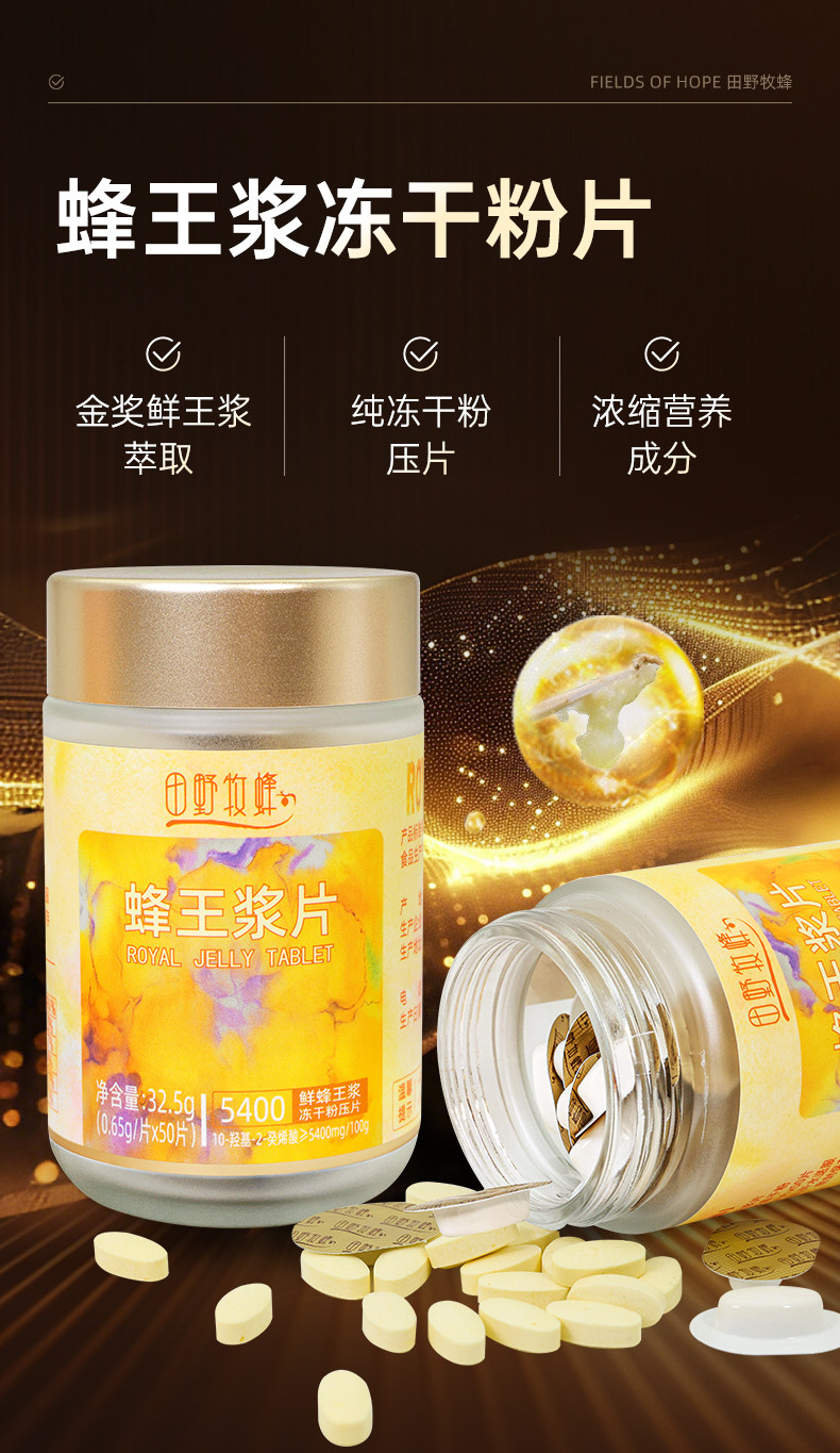 田野牧蜂蜂王浆片礼盒送长辈领导礼物蜂王浆冻干粉含片50粒/瓶