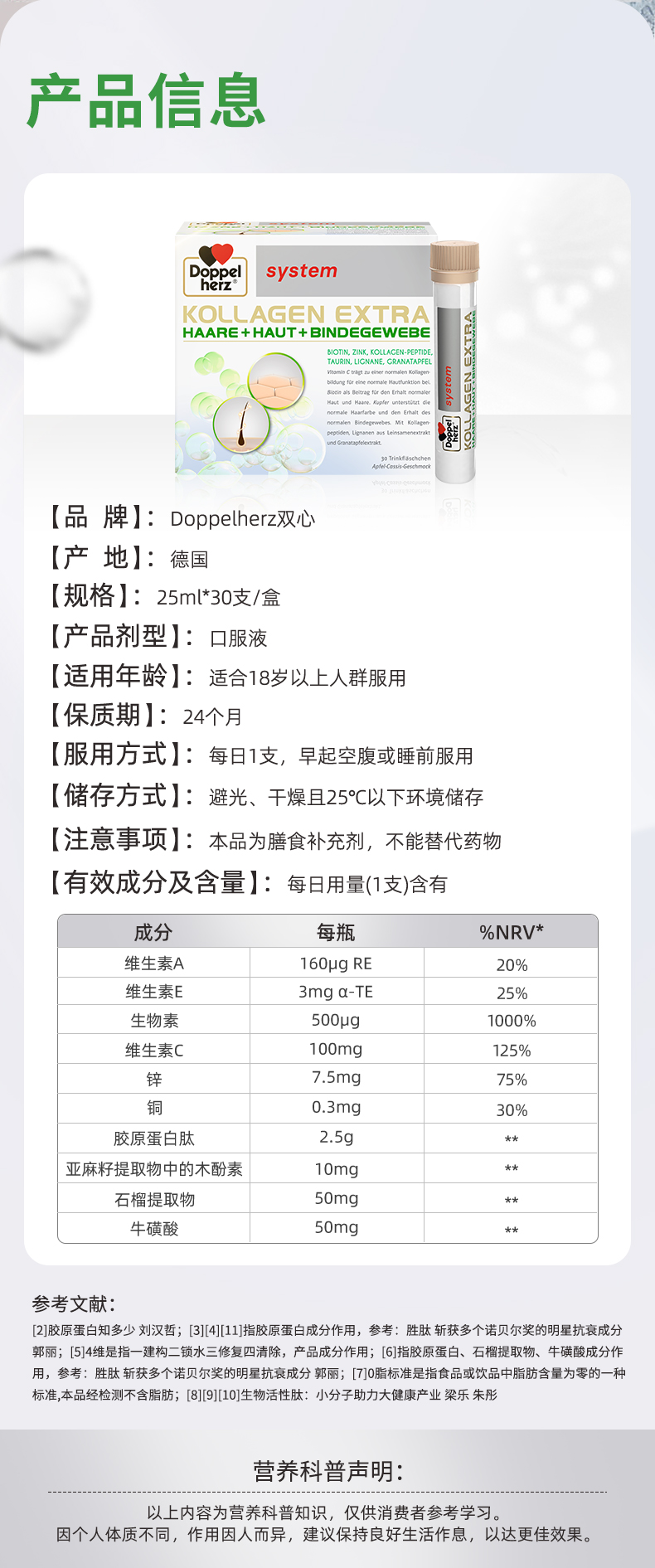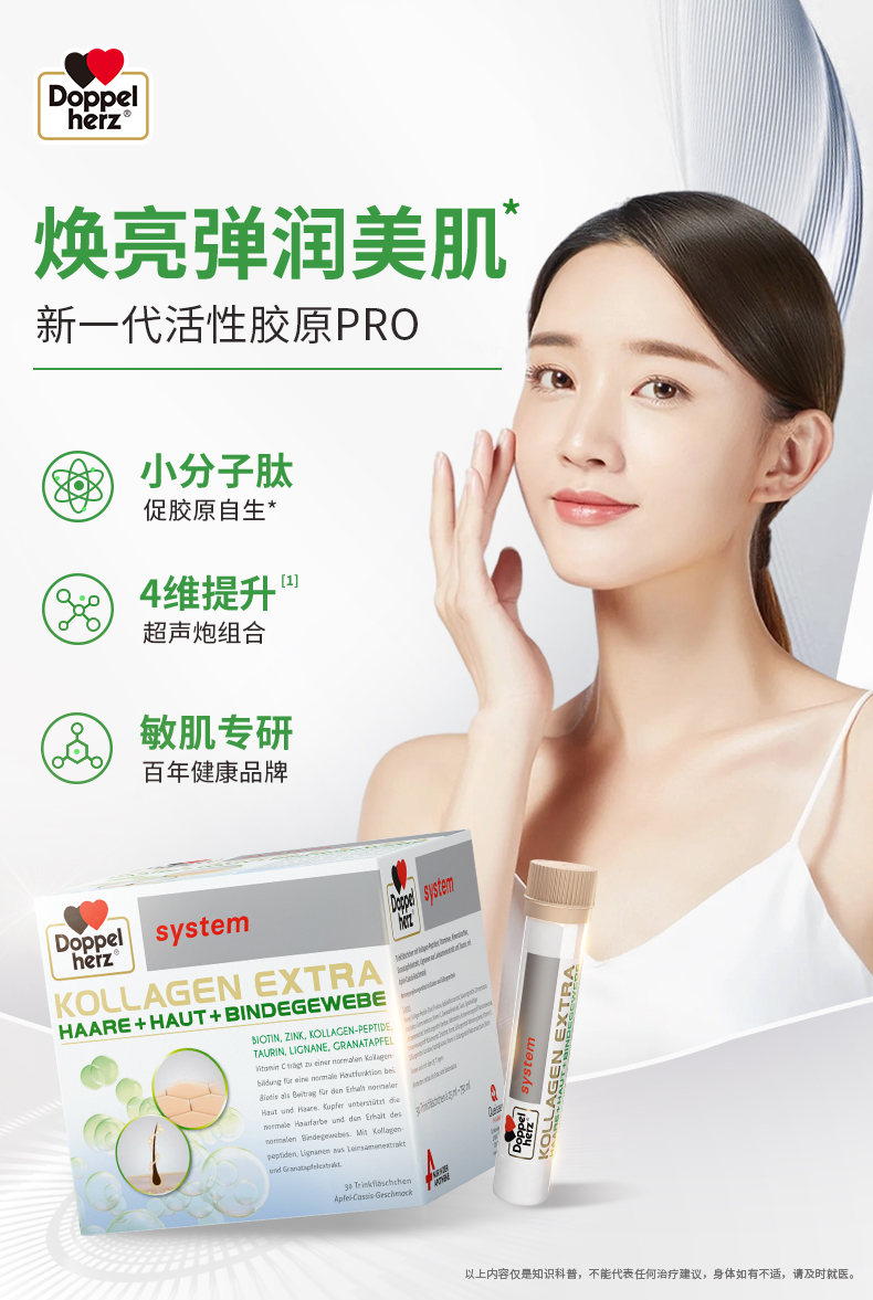 【德国双心】加强版胶原蛋白肽Biotin美肌口服液30瓶 三盒装