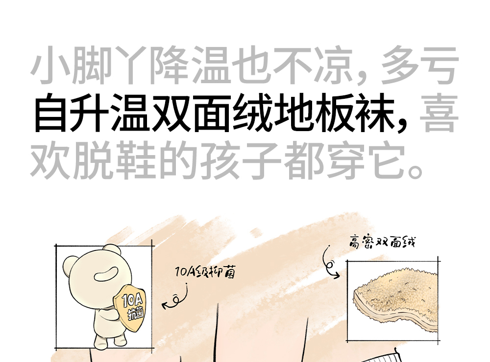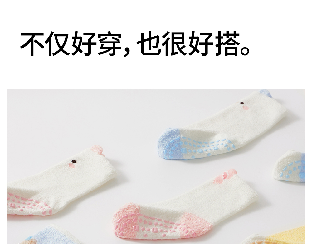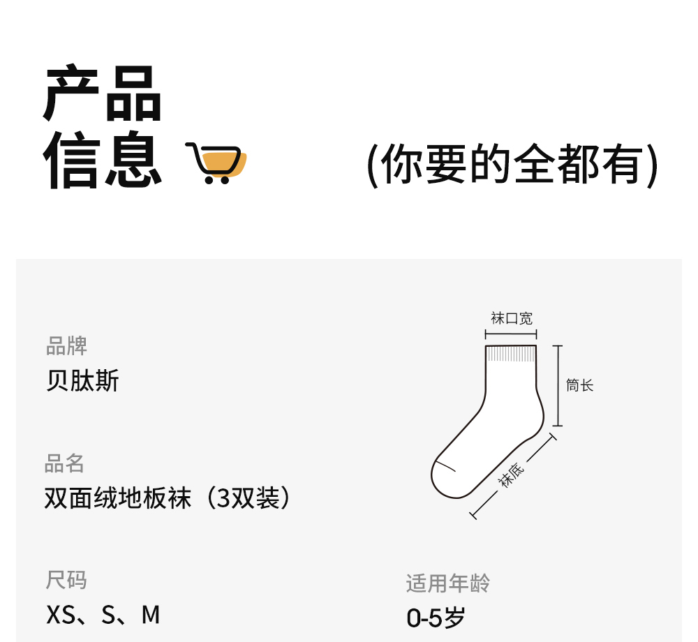 【贝肽斯】双面绒宝宝地板袜儿童防滑隔凉秋冬季加厚婴幼儿学步防滑袜
