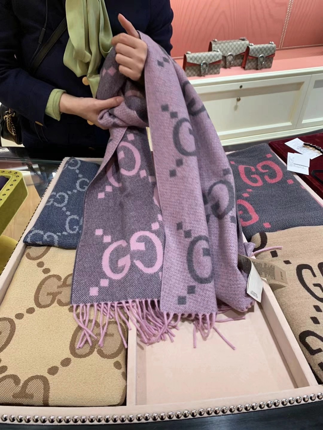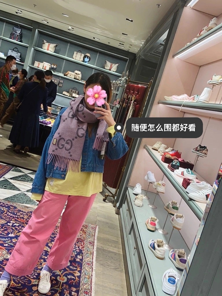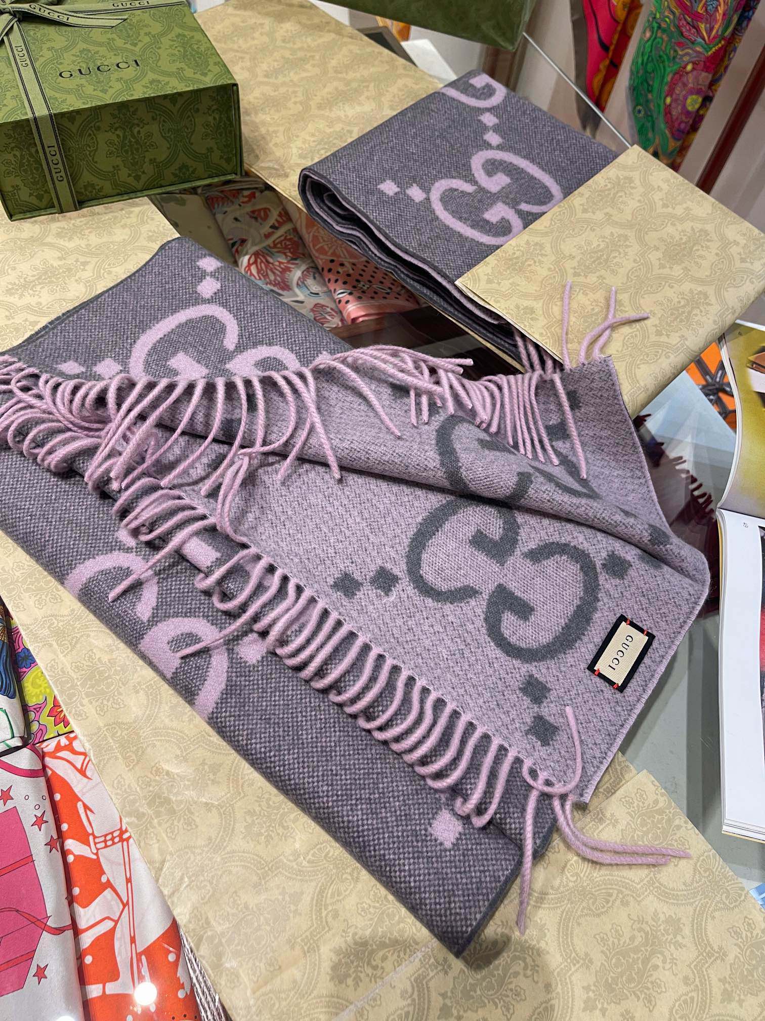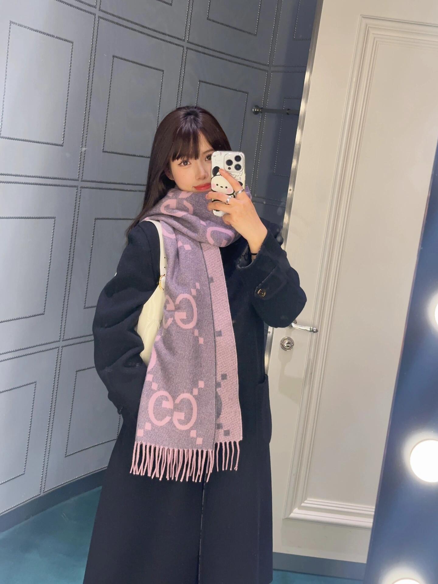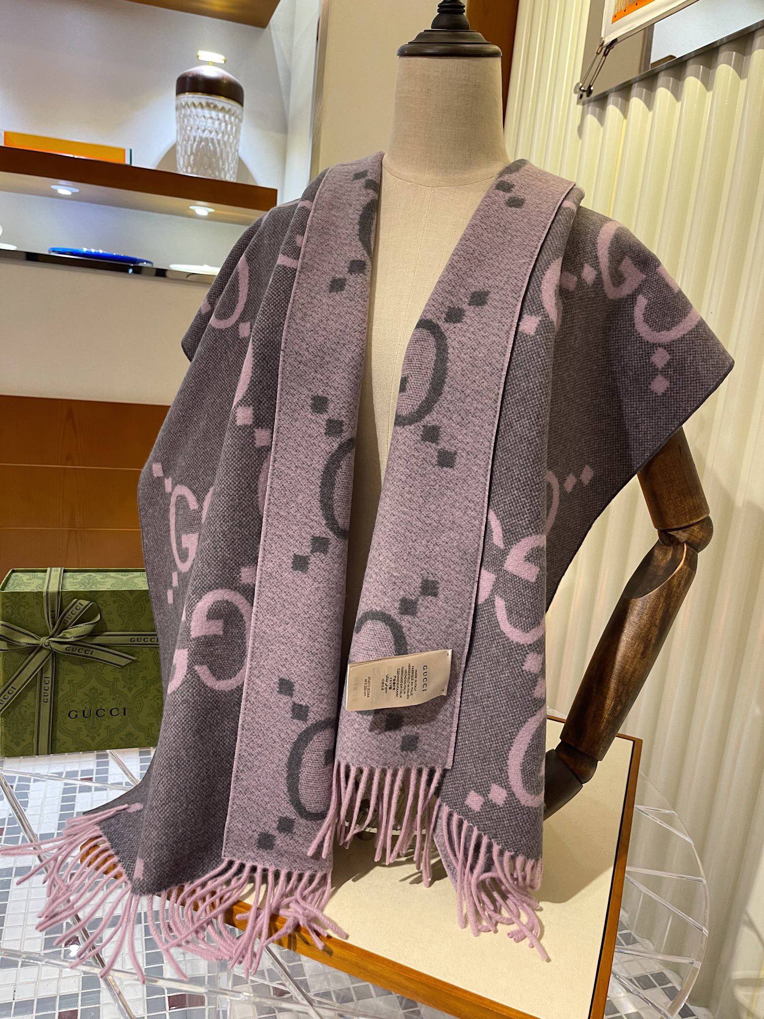 顶级版本! 20羊绒80羊毛 Gucci秋冬新款提花双面围巾 高级时髦精必入推荐 上身的感觉真的无敌高级气质 自带高级气场!