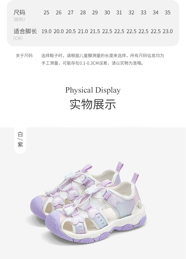 泰兰尼斯儿童凉鞋夏季新款女童户外凉鞋包头凉鞋露营凉鞋儿童鞋子 T07X5B6397