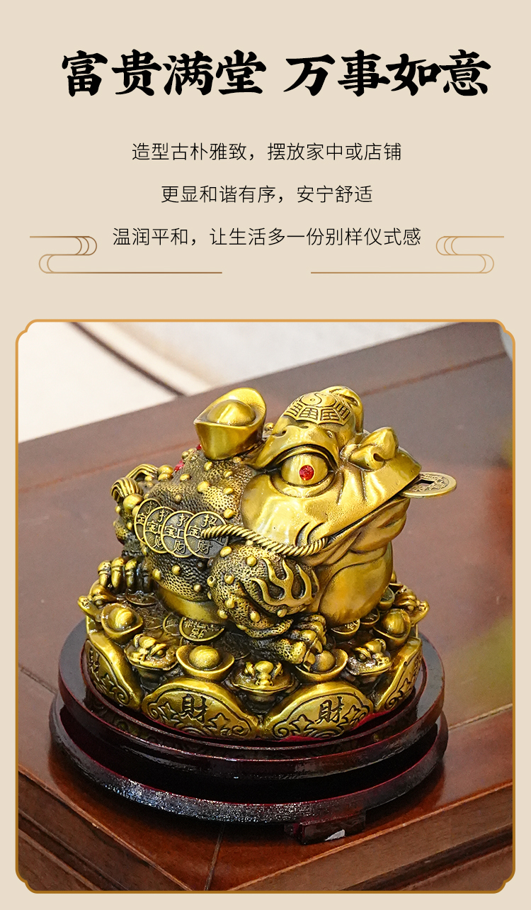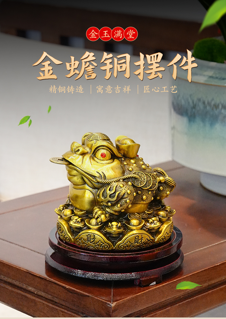 金蟾铜摆件金蟾咬钱进宝蟾蜍供奉摆件吸财金蟾