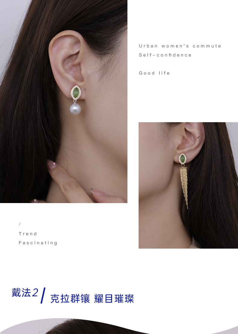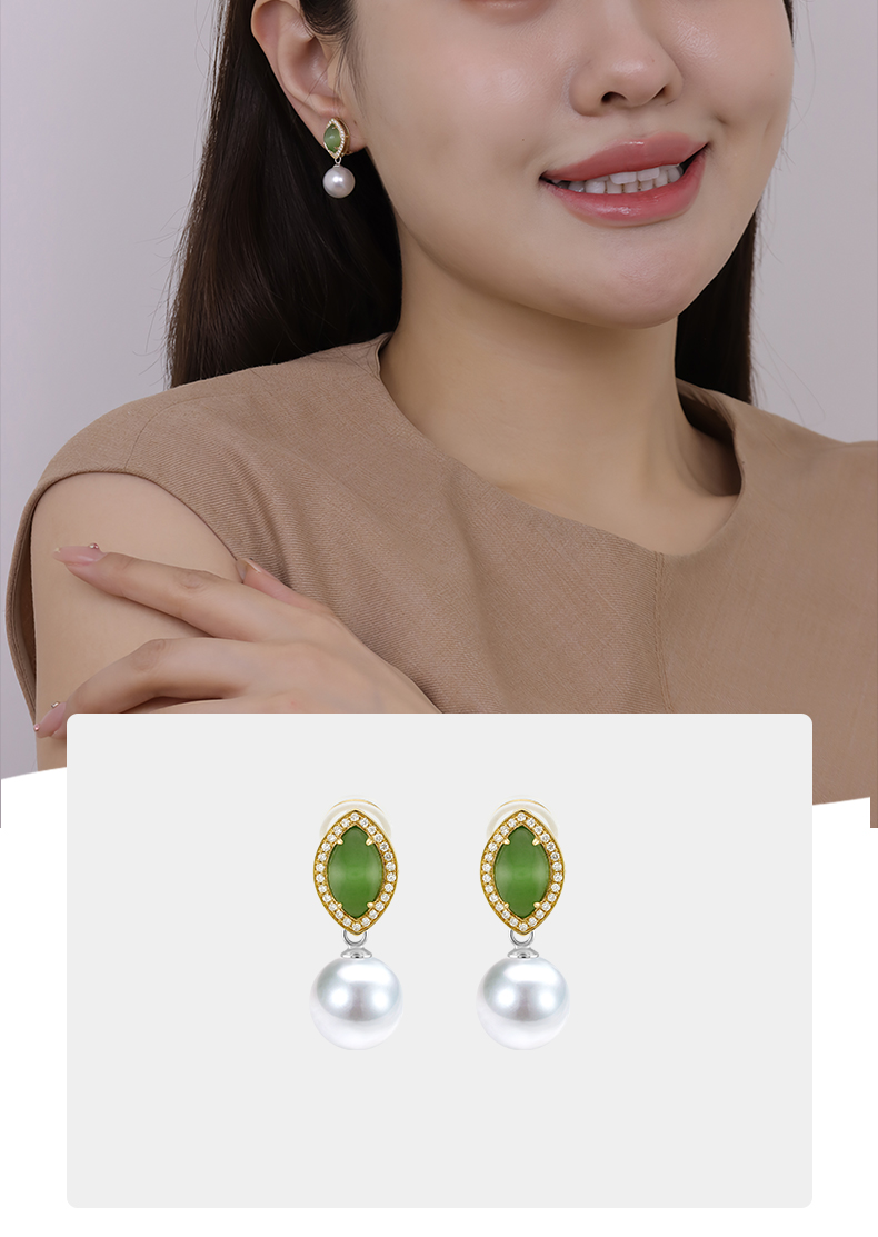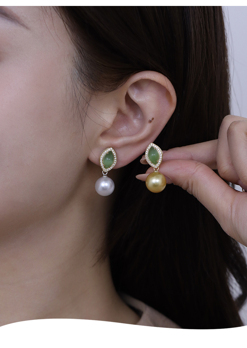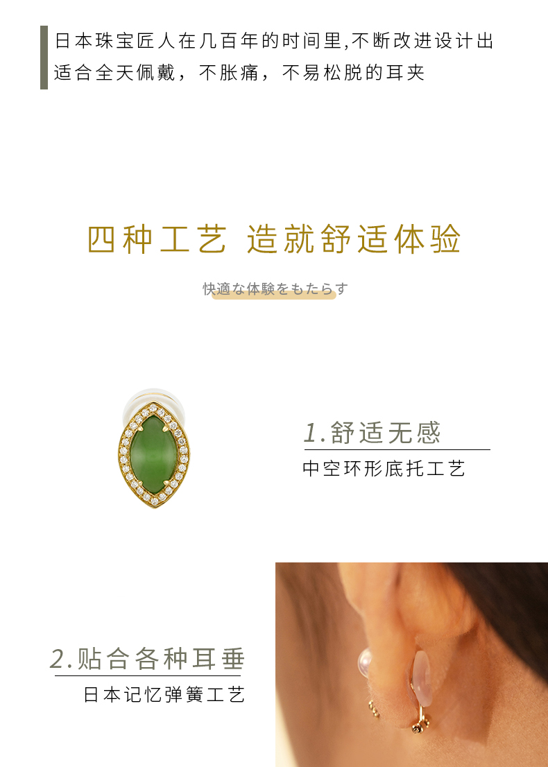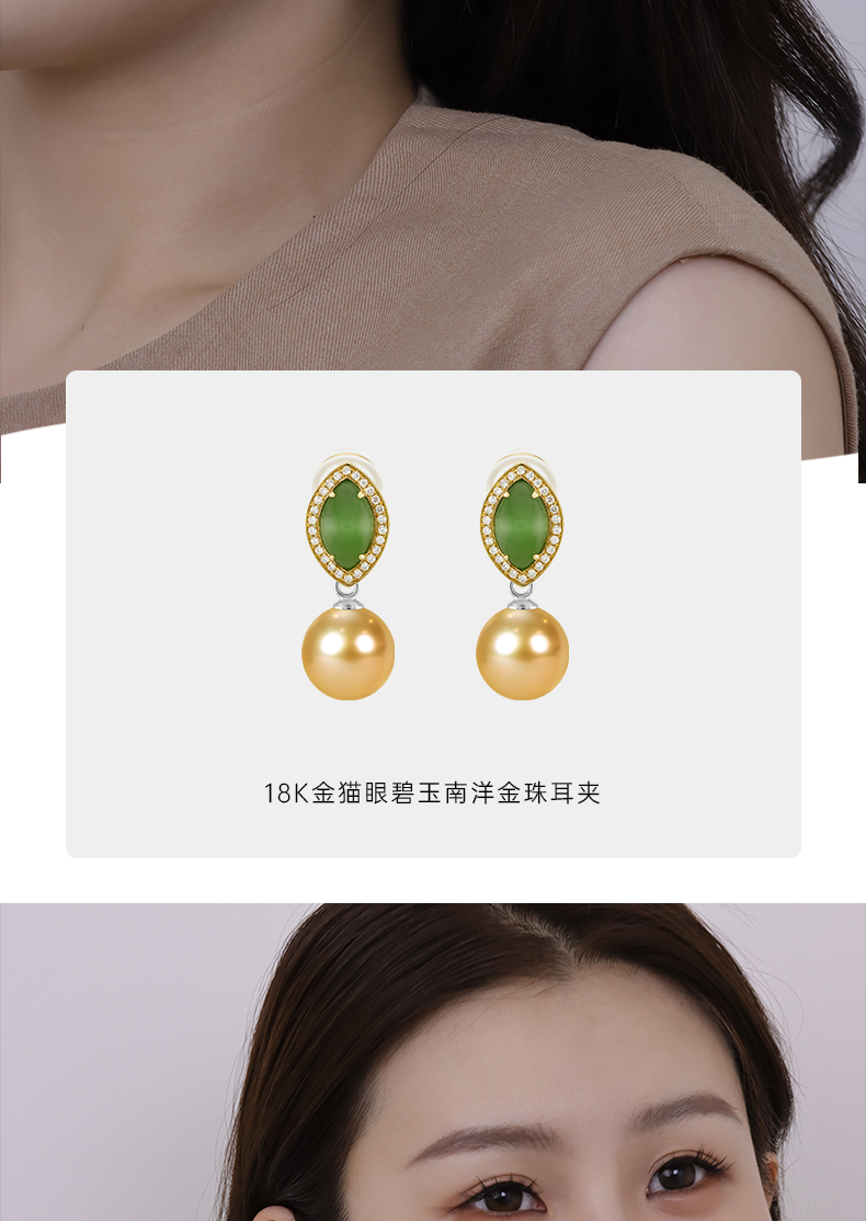 【挚友限定】两戴款-18k金钻石猫眼碧玉耳夹