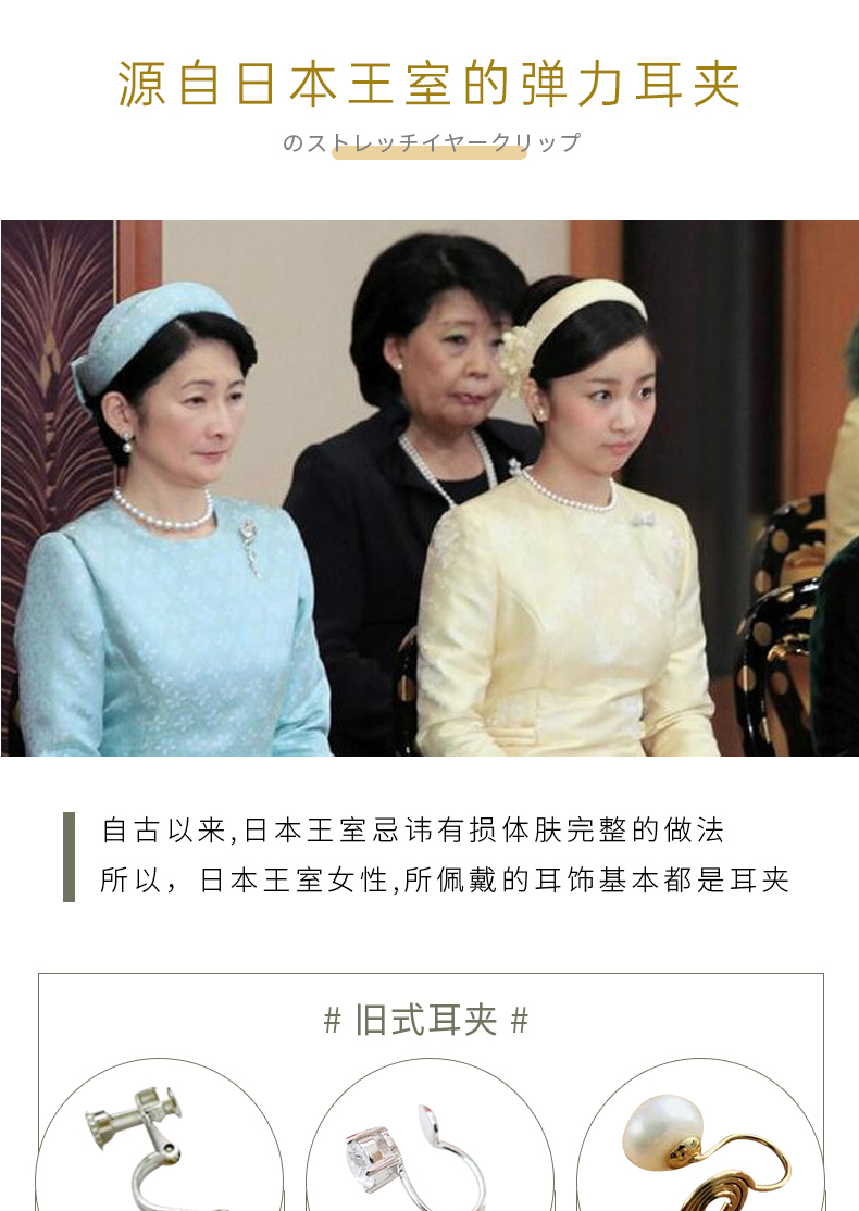 【天猫同款】悦甄18k金澳白珍珠钻石耳夹 戴妃耳夹