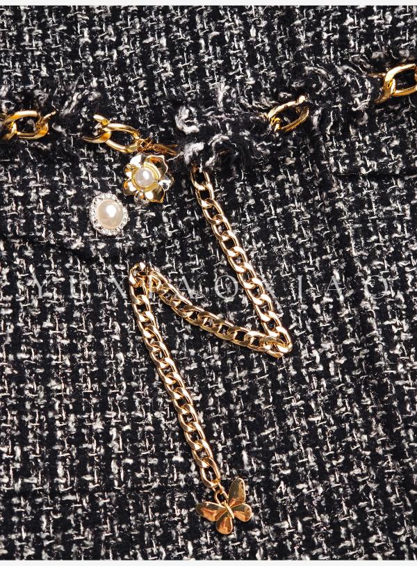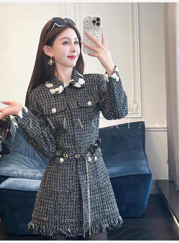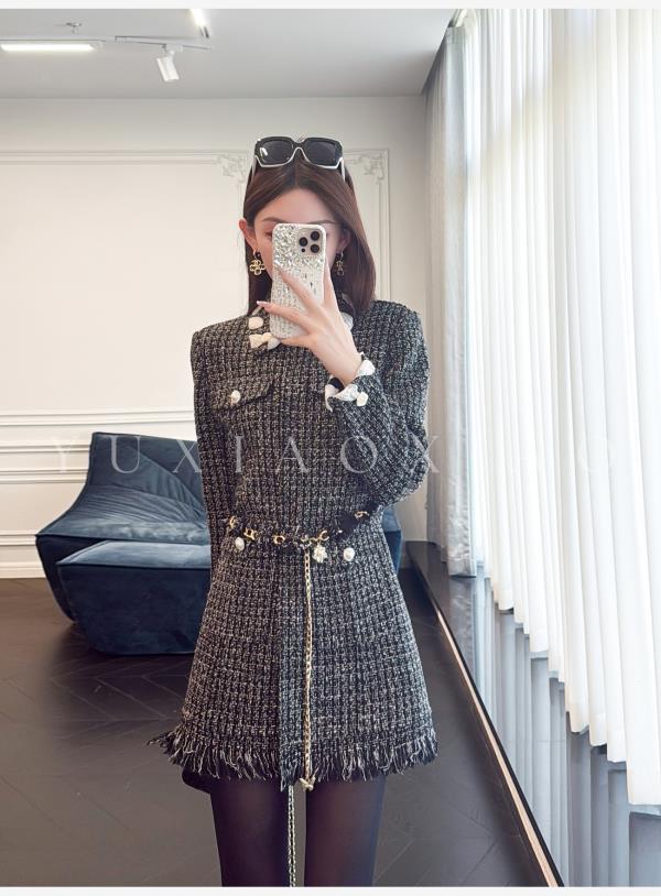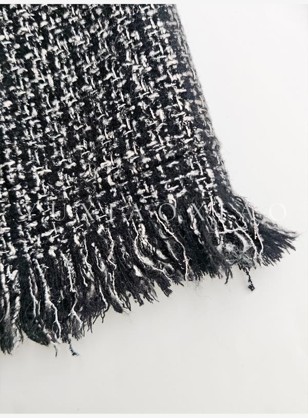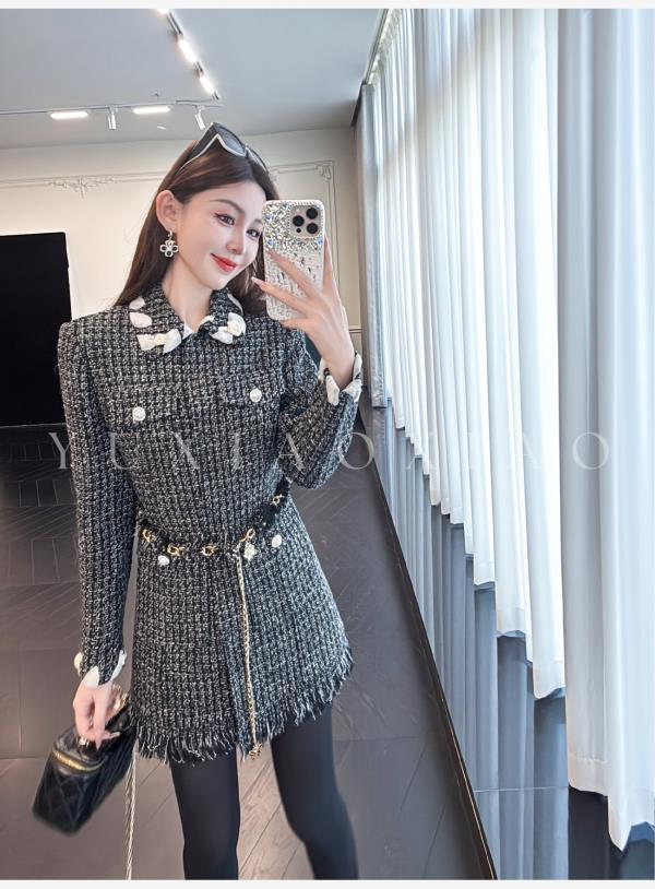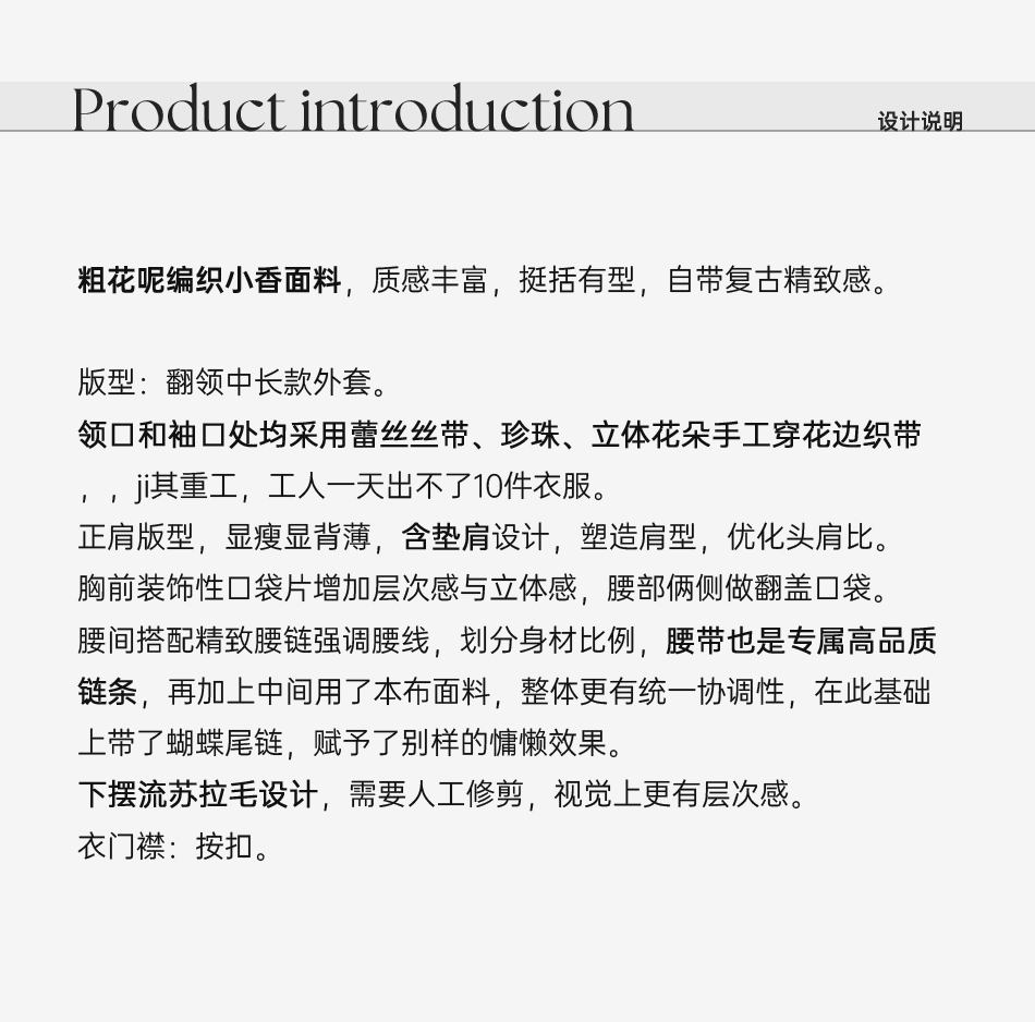 余潇潇【黑钻缪斯】重工手工双面呢小香翻领中长款绵羊毛外套