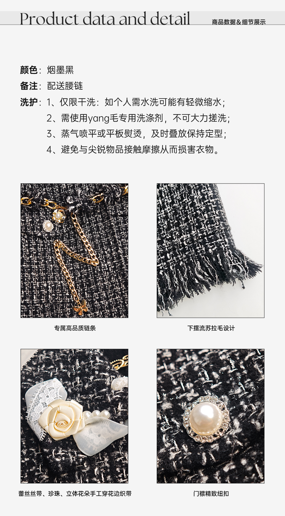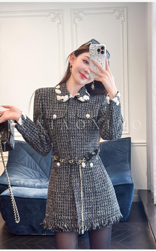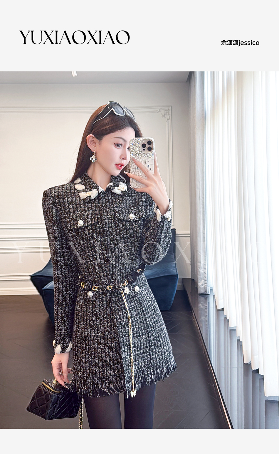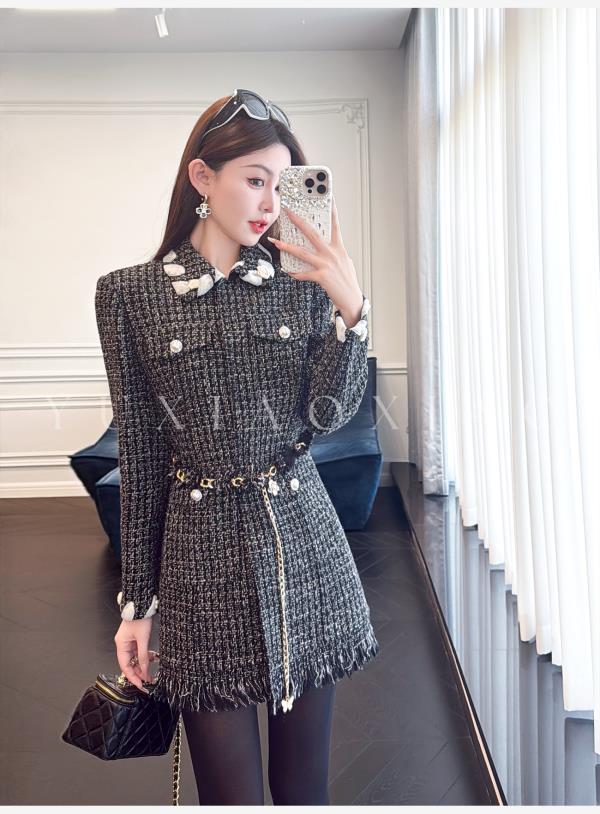 余潇潇【黑钻缪斯】重工手工双面呢小香翻领中长款绵羊毛外套