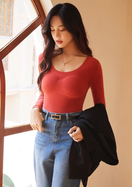 领口宽度较大 但并不是很低 码数别过于贪大 不会走光 无收肉 无收副乳效果