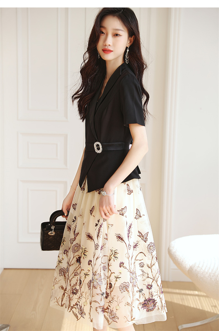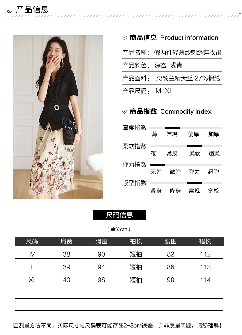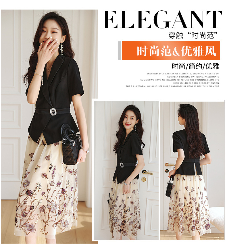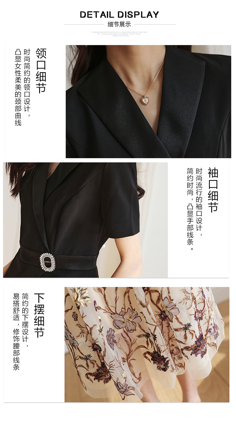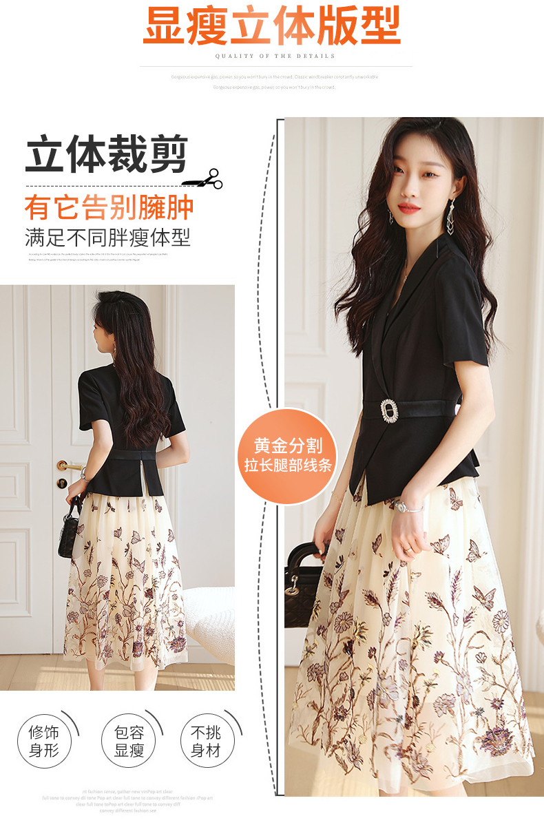 2022夏季新款职场气质轻奢高级感假两件轻薄纱刺绣连衣裙 HR-QSLG0211-3
