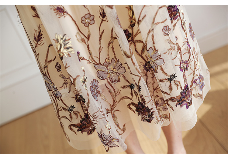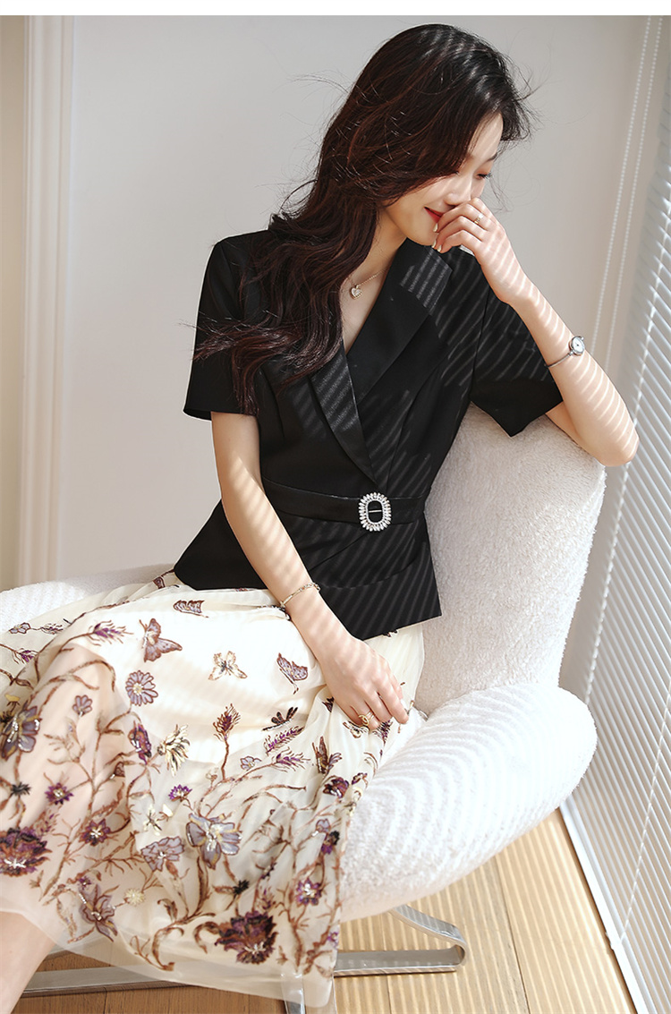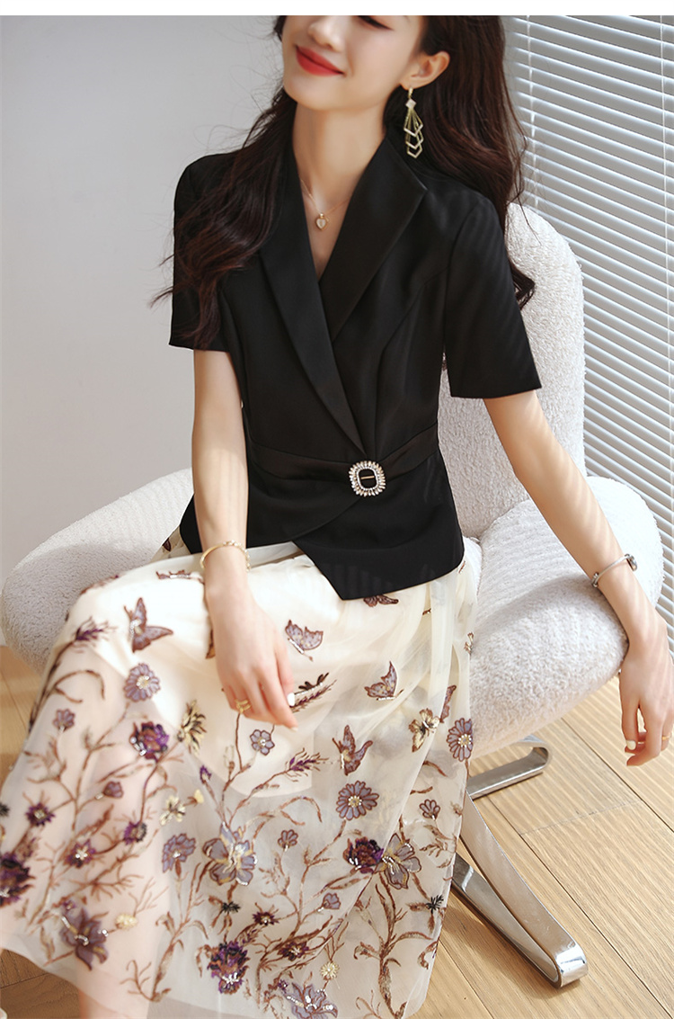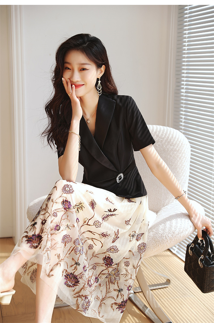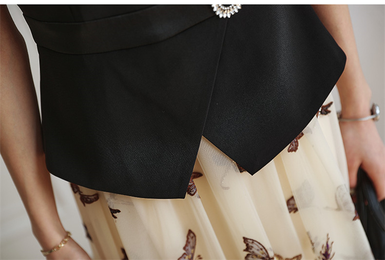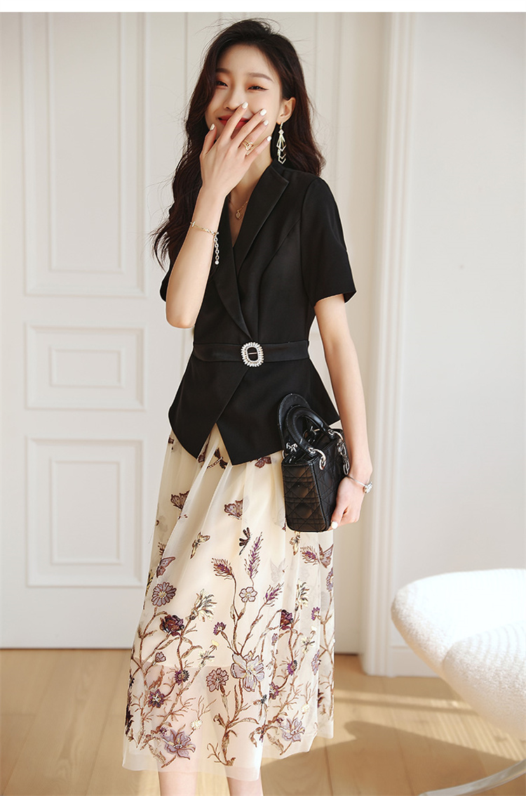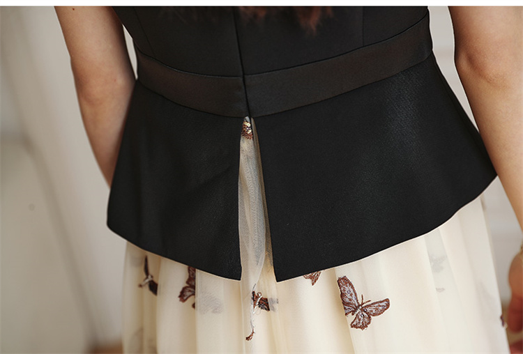 2022夏季新款职场气质轻奢高级感假两件轻薄纱刺绣连衣裙 HR-QSLG0211-3